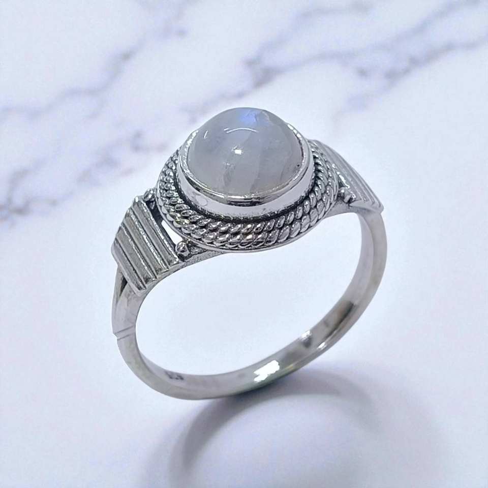 แหวนเงินแท้ 925 ประดับด้วยมูนสโตนสีน้ำเงินธรรมชาติ รุ้งไฟ และโรสควอตซ์ ราคาขายส่ง เครื่องประดับเงินและแหวนคุณภาพสูง