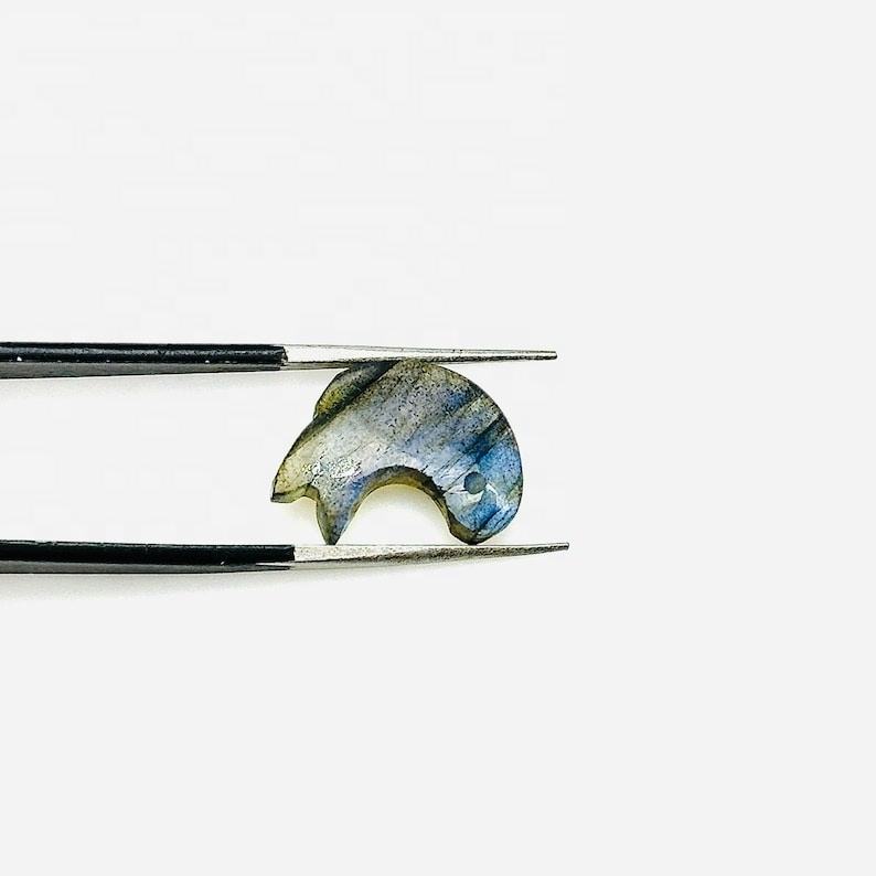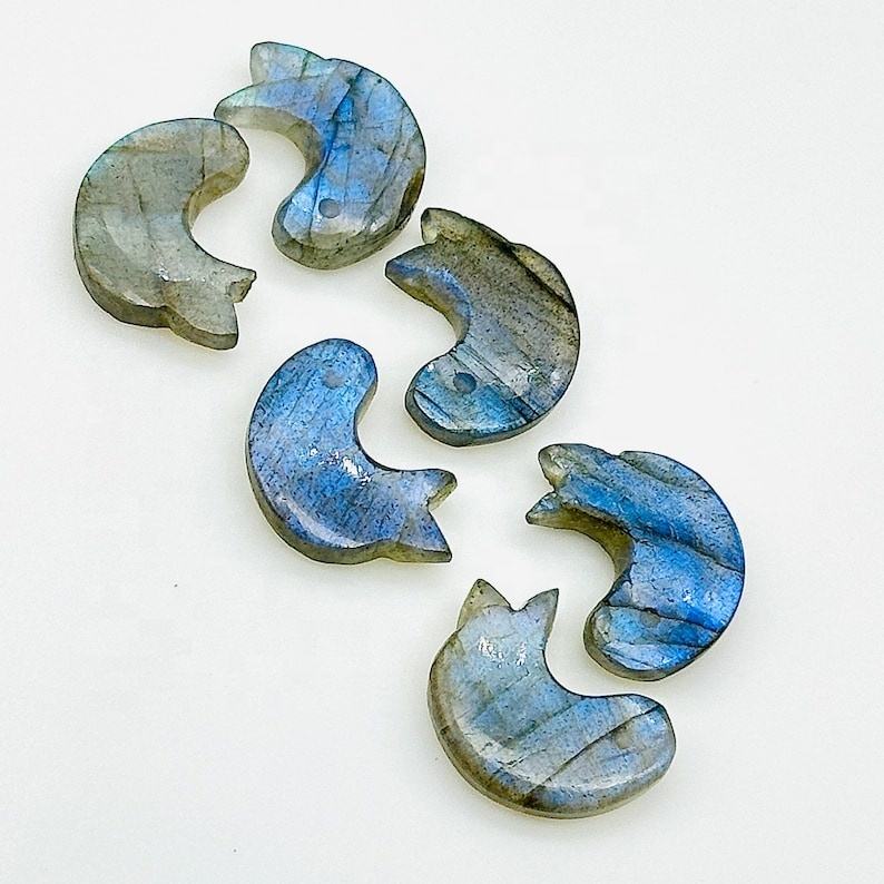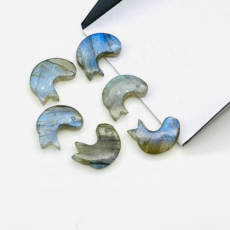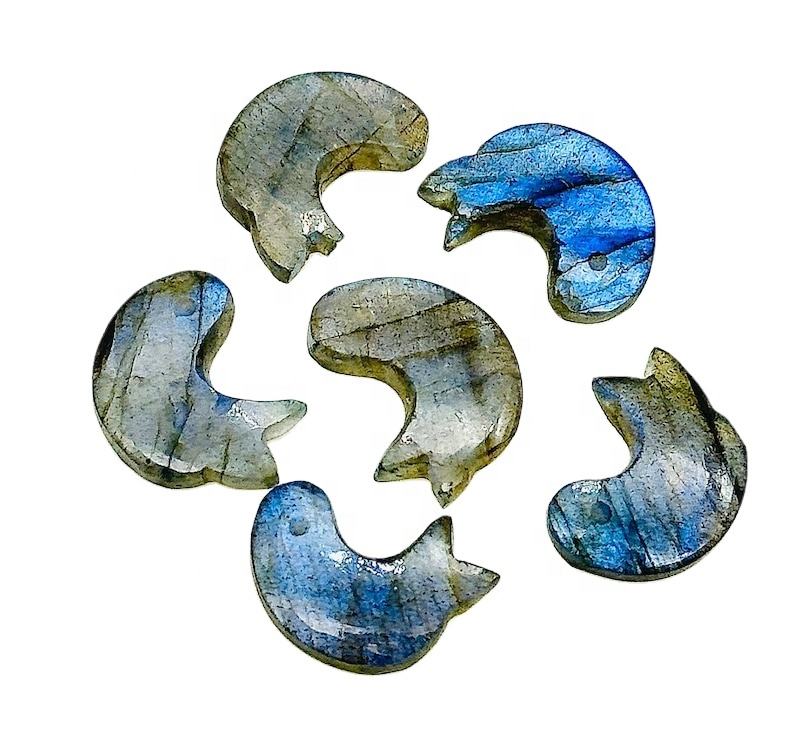 ลูกปัดอัญมณีสลักลายปลาโลมาลาบราดอไรต์ธรรมชาติสีน้ำเงินแวววาวมีเสน่ห์สำหรับทำเครื่องประดับแกะสลักรูปปั้นลาบราดอไรต์