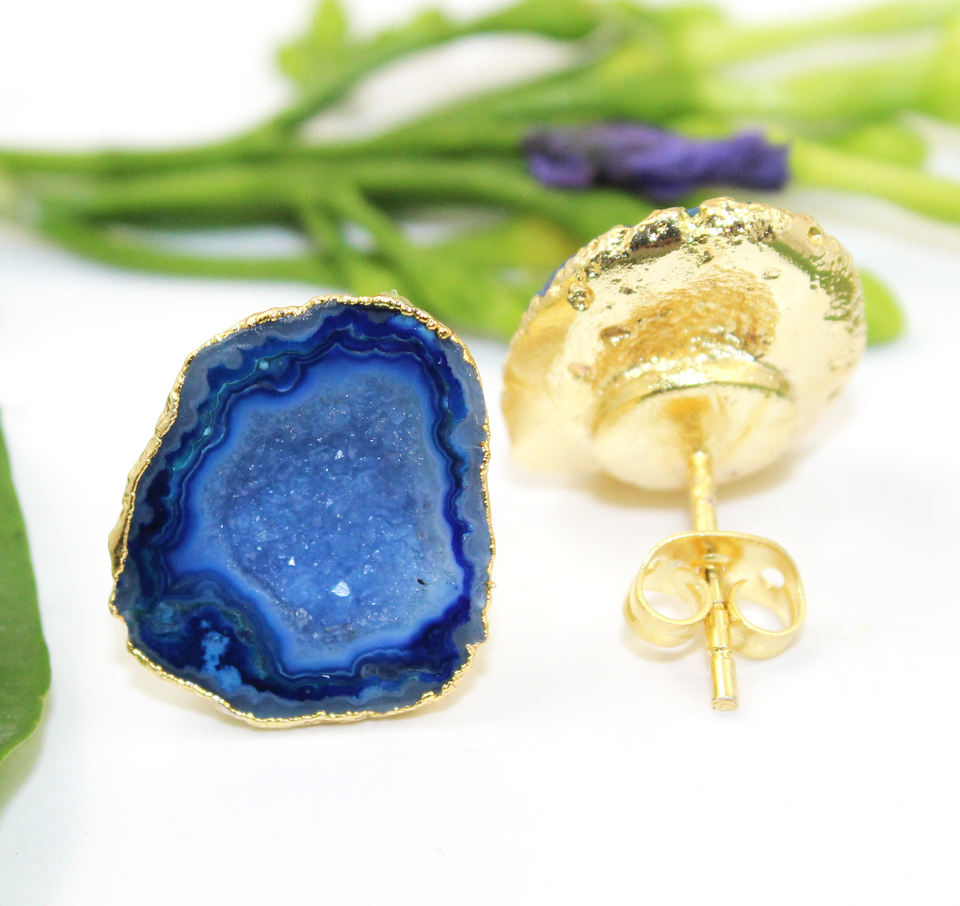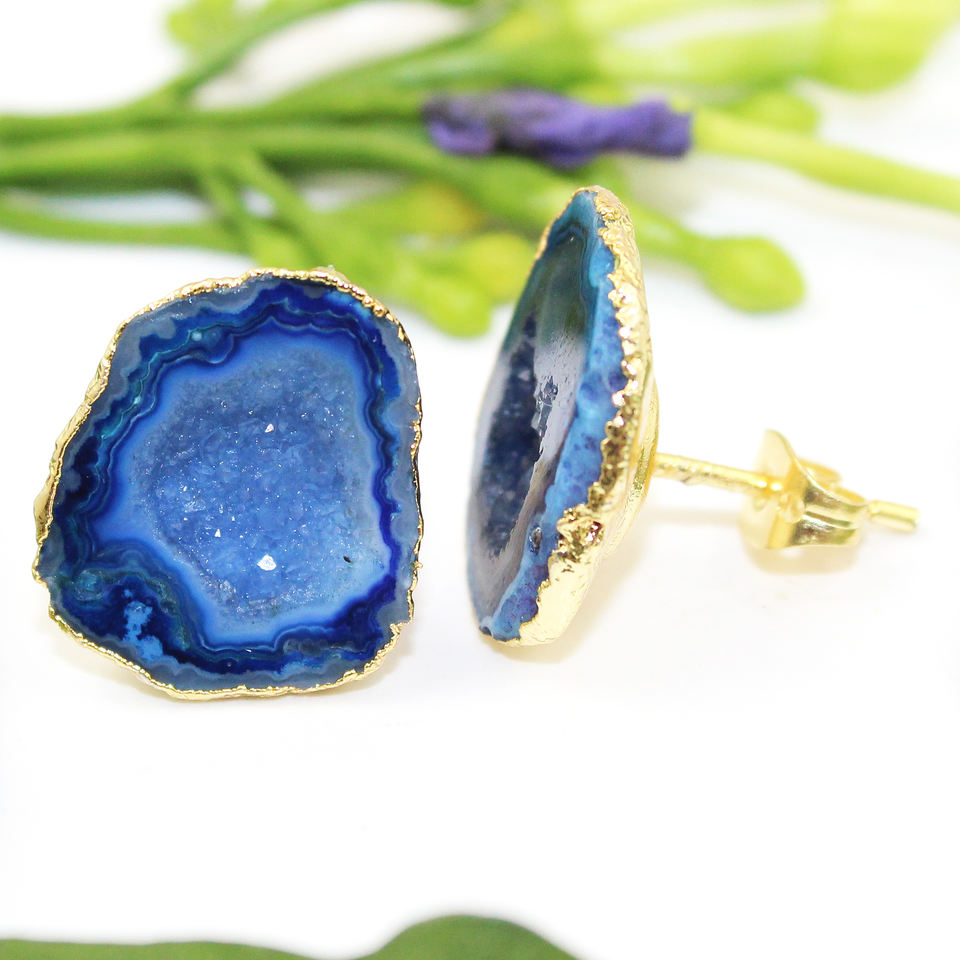 ต่างหูแบบทำมือชุบด้วยไฟฟ้าสีทองธรรมชาติรูปทรงเรขาคณิตสีน้ำเงินเครื่องประดับขายส่ง