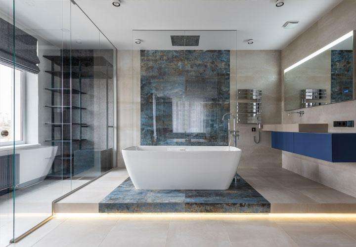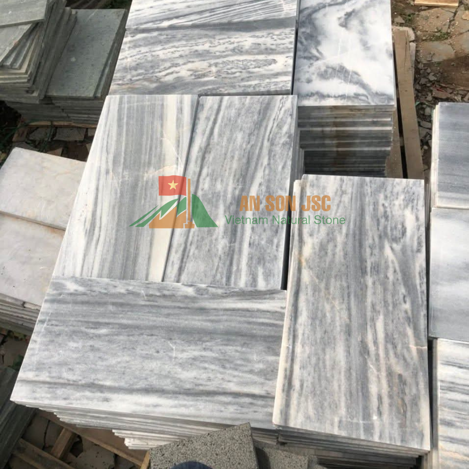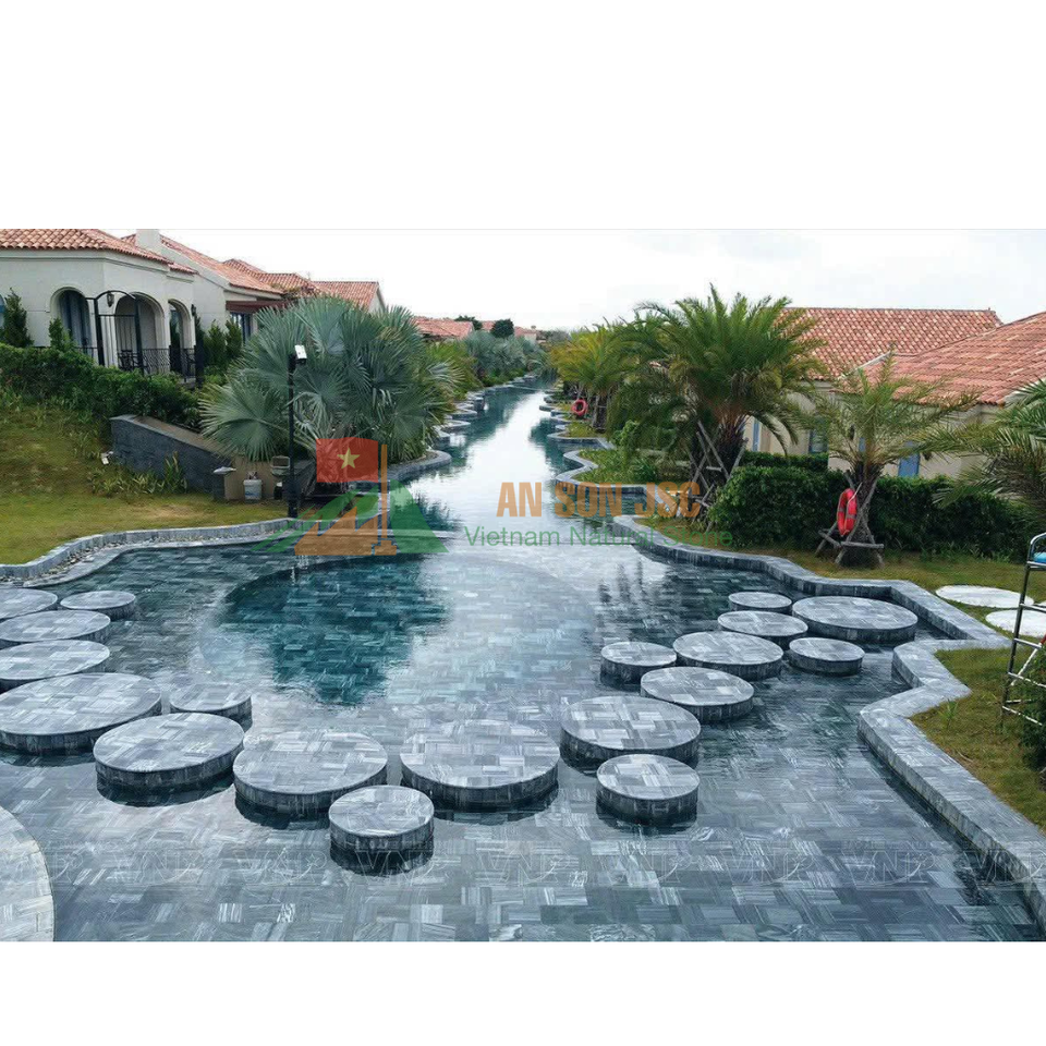 กระเบื้องปูพื้นสระว่ายน้ำหินอ่อนสีน้ำเงินเทาธรรมชาติ กันลื่น กระเบื้องสระว่ายน้ำหรูหรา สำหรับตกแต่งสวนภายนอก