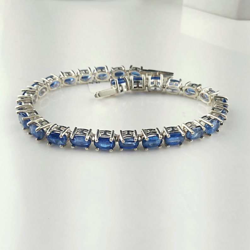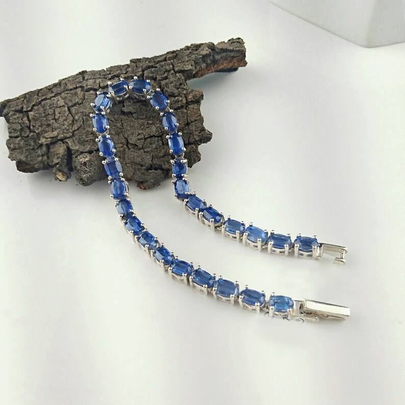 925พลอยไคยาไนต์สีน้ำเงินธรรมชาติสร้อยข้อมือเทนนิสเงินสเตอร์ลิงสำหรับผู้หญิงเครื่องประดับแฟชั่นทำมือคุณภาพสูง
