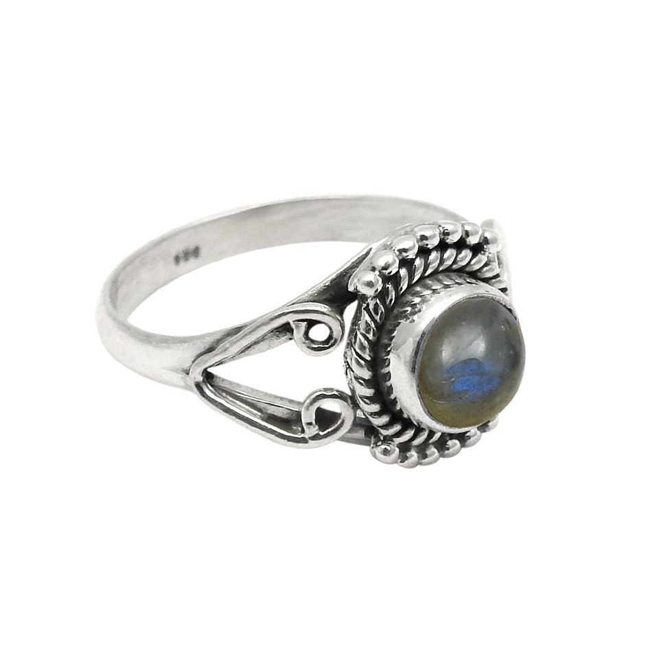 อัญมณีลาบราดอร์ไทต์สีน้ําเงินธรรมชาติ 925 แหวนทรงกลมเงินสเตอร์ลิง ออกแบบสั่งทําพิเศษ ผู้ผลิตเครื่องประดับ ผู้ส่งออกชาวอินเดีย