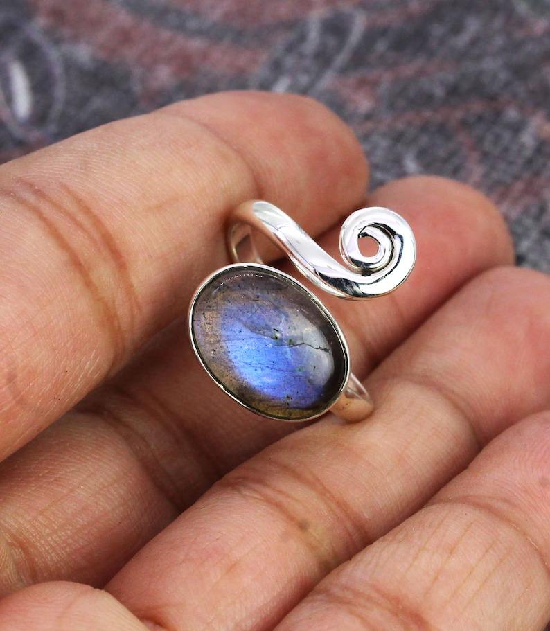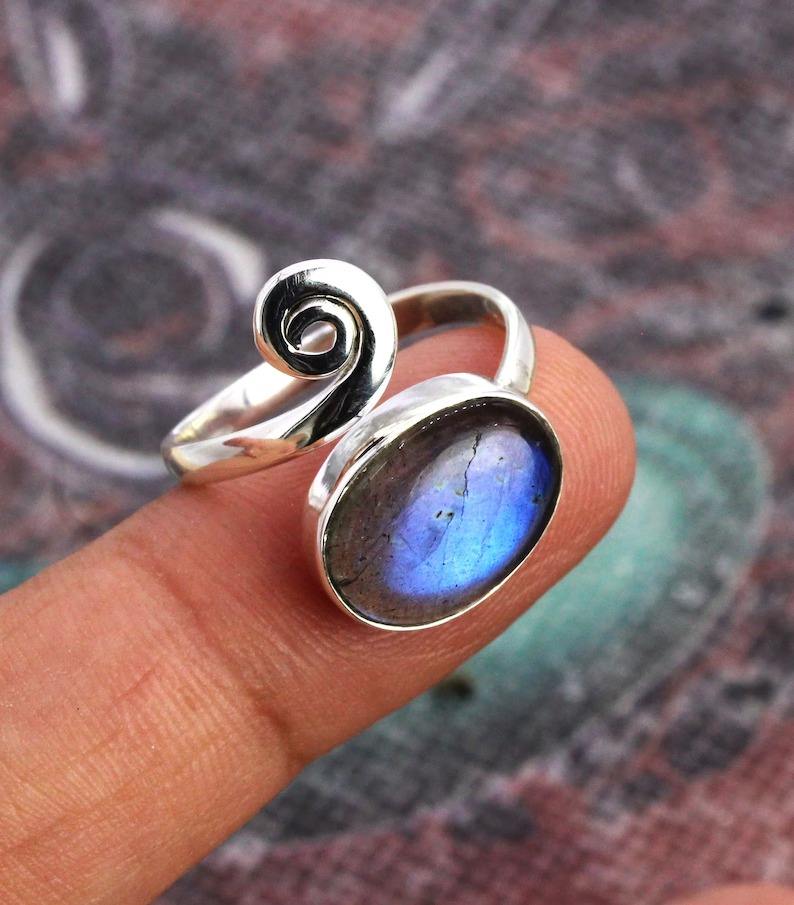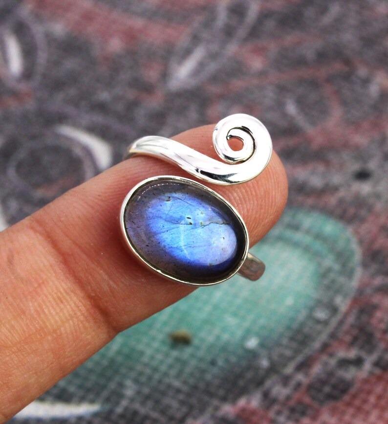 แหวนพลอยลาบราดอไรต์สีน้ำเงินธรรมชาติ เงินแท้ 925 ตัวเรือนแบบฝังขอบสไตล์วินเทจ แหวนหมั้นรับรองคุณภาพ เครื่องประดับสำหรับทุกเพศ