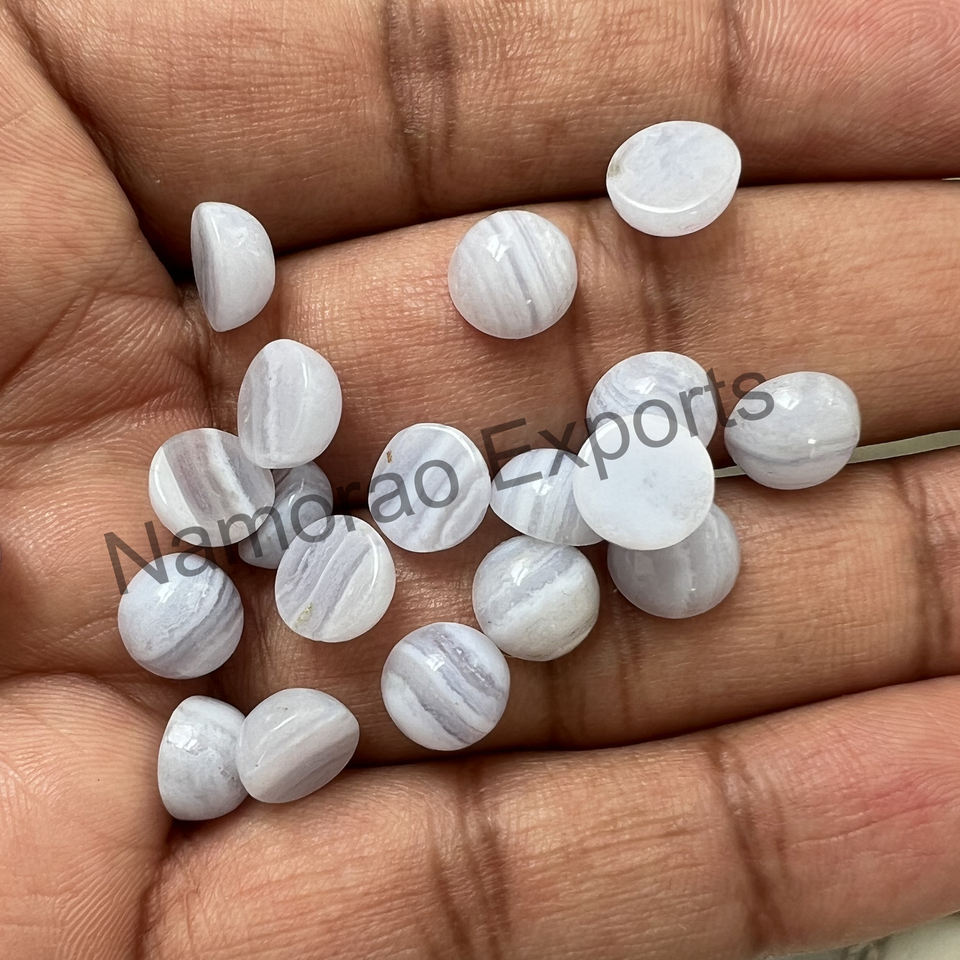 พลอยโมราลูกไม้สีฟ้าธรรมชาติทรงกลมขนาด8x8มม. พร้อมใช้งานทุกขนาดสำหรับทำหินอัญมณีหลวม