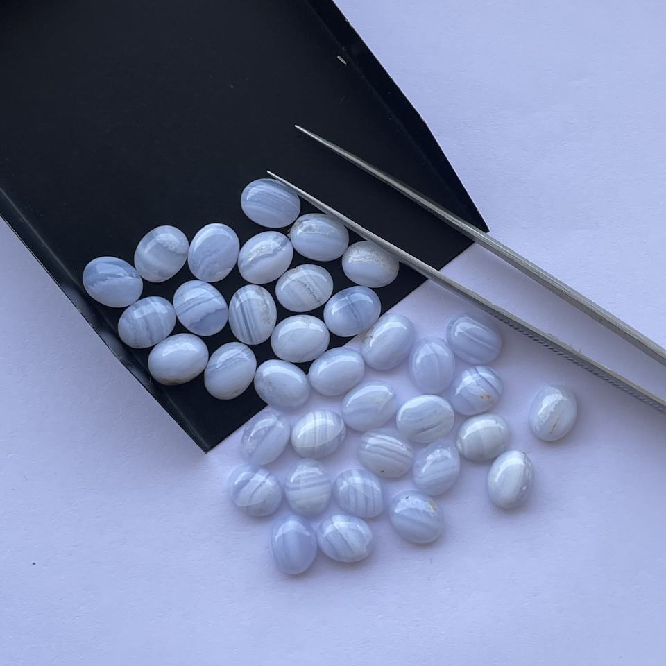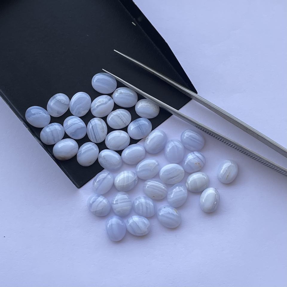 หินอาเกตลูกไม้สีฟ้าธรรมชาติขนาด8มม. 10มม. เรียบทรงรีอัญมณีทรงหลังเบี้ยสำหรับทำเครื่องประดับการตั้งค่ากึ่งมีค่า