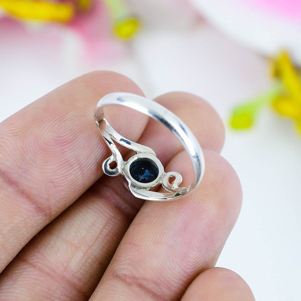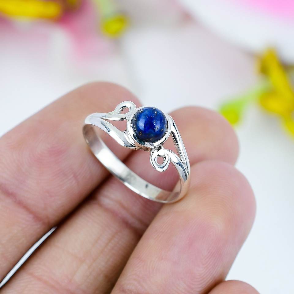แหวนเงินแท้ 925 ประดับพลอยสีน้ำเงินลาพิส สำหรับผู้หญิง | แหวนพลอยธรรมชาติทรงกลมปรับขนาดได้ | เครื่องประดับแฮนด์เมดเรียบหรู