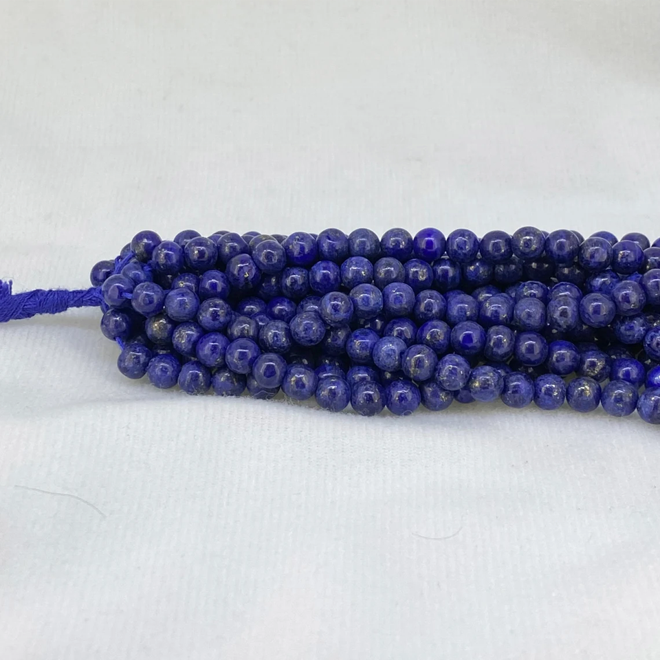 สร้อยคออัญมณีลูกปัด Lapis Lazuli สีฟ้าธรรมชาติทรงกลมเรียบ