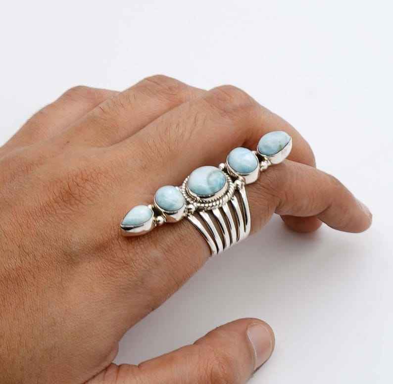 แหวนลาริมาร์สีน้ำเงิน925แหวนใหญ่ดีไซน์เนอร์เงินสเตอร์ลิงสำหรับเดือนมีนาคม