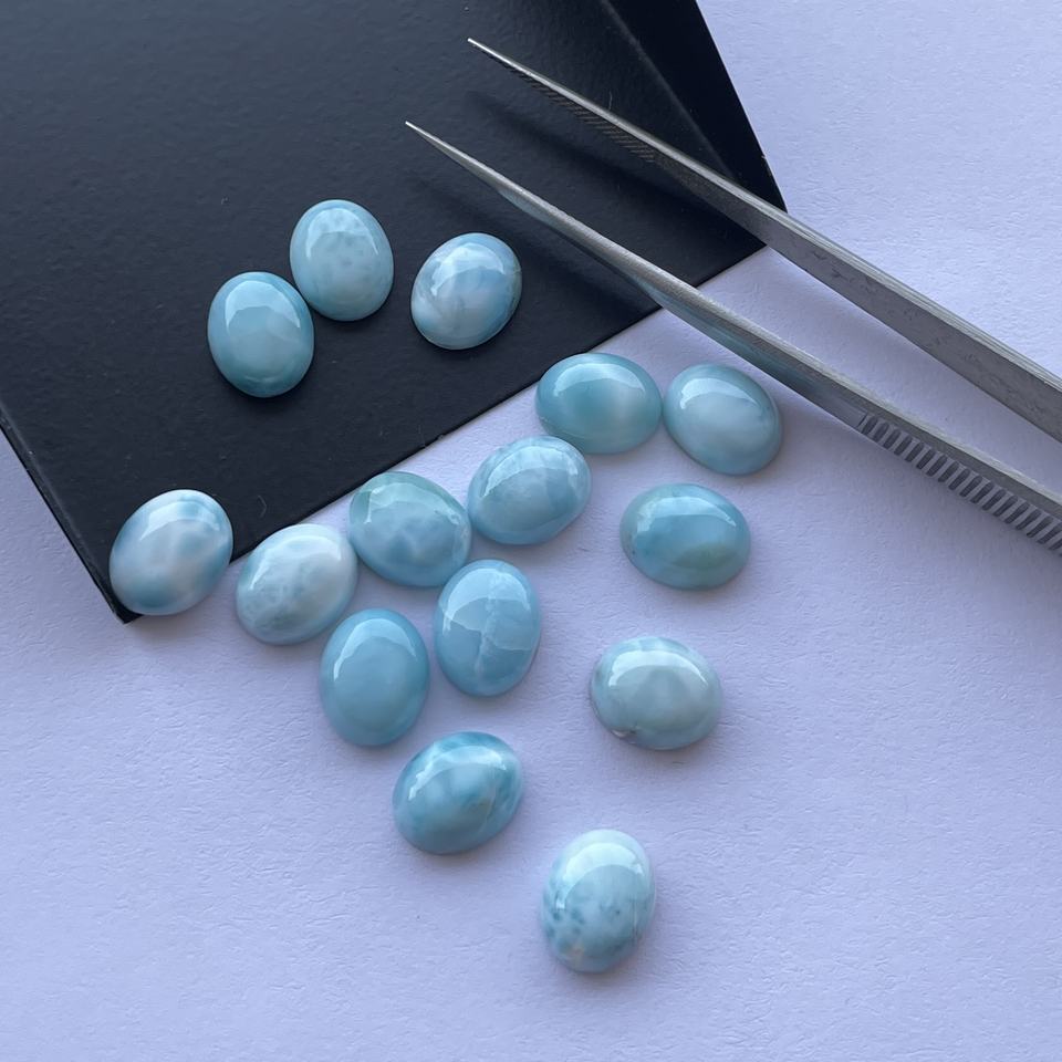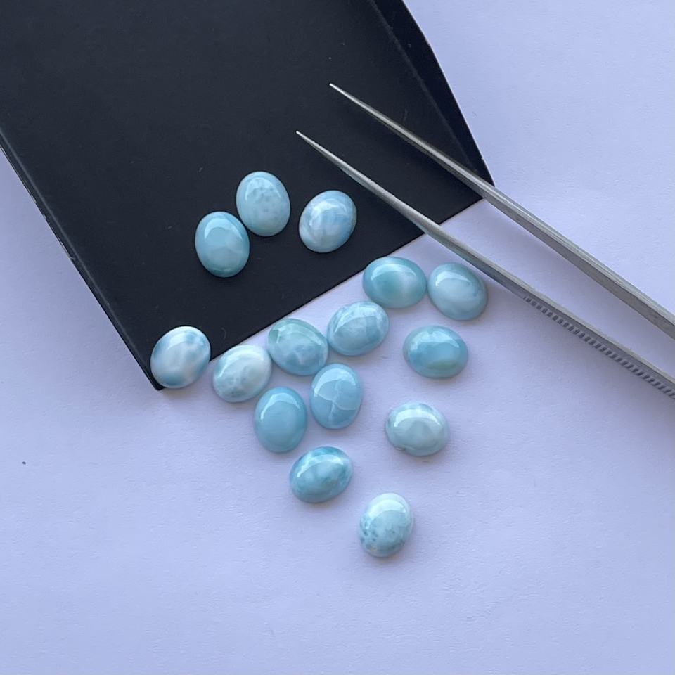 หินลาริมาร์ธรรมชาติขนาด8มม. 10มม. อัญมณีทรงรีหลวมเรียบจากผู้ผลิตอัญมณี