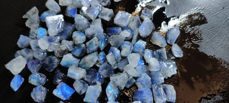 ชิปพลอยบลูมูนสโตนธรรมชาติแบบไม่เจาะรู สำหรับทำเครื่องประดับ DIY รูปทรงอิสระ ชิ้นใหญ่ จำนวนมาก คริสตัลดิบ ขนาด 3 มม.-5 มม.