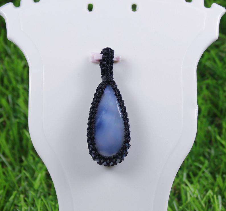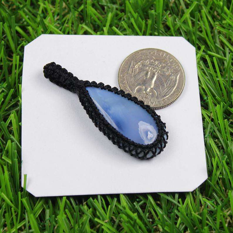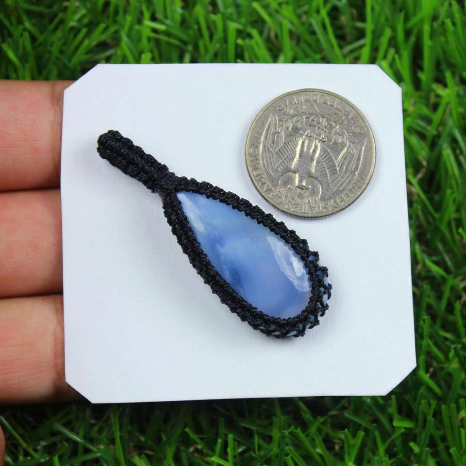 Natural Blue Opal Gemstone Pendant Macrame Pendant Thread Pendant Semi Precious Gemstone Gemstone Jewelry Hand Polished Cabs