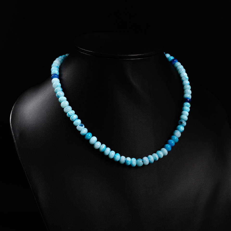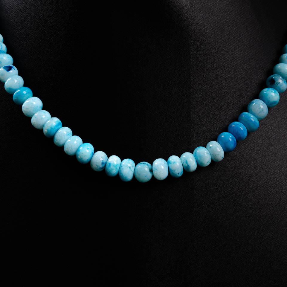 สร้อยโชคเกอร์ลูกปัดโอปอลสีฟ้าธรรมชาติแบบเรียบสร้อยคอลูกปัดหินหลวมเครื่องประดับโอปอลทำด้วยมือสำหรับผู้หญิงสร้อยคอโอปอลจำนวนมาก