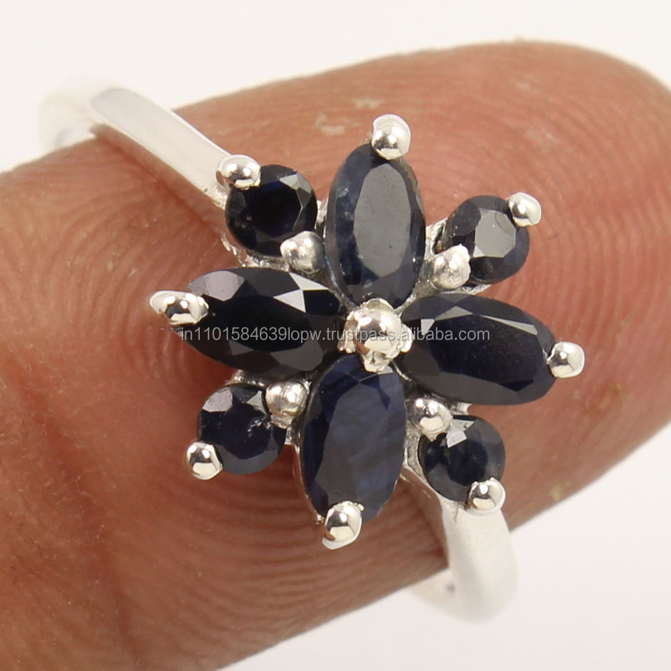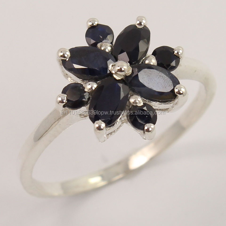 Natural Blue Sapphire Gemstone 925 Sterling Silver Oval Cut Floral Design Wedding Ring Gift for Women