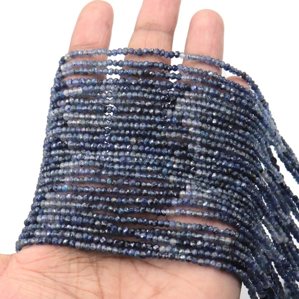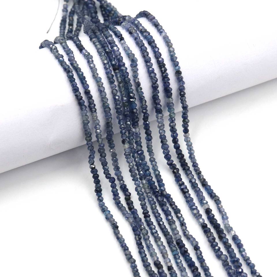 ลูกปัดพลอยไพลินสีน้ำเงินธรรมชาติ แท้ ขนาด 3-4 มม. คุณภาพสูง ทรงเหลี่ยมเจียระไน สำหรับทำสร้อยคอ