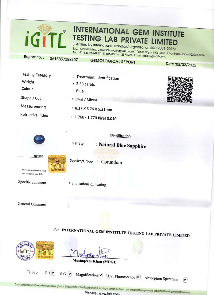 ชื่อ:พลอยแซฟไฟร์ธรรมชาติ