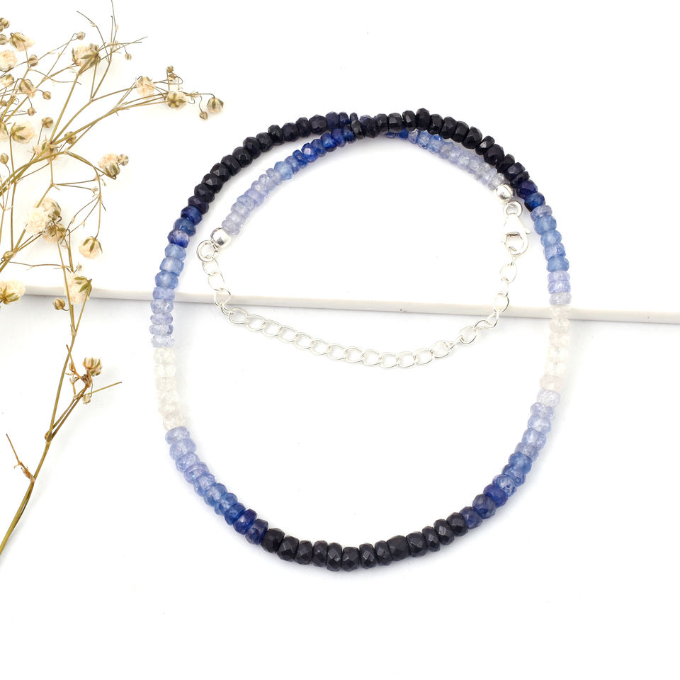 สร้อยคอลูกปัดชุบทองสเตอริ925แซฟไฟร์สีฟ้าพลอยเจียระไนแบบเหลี่ยมเพชรพลอยสำหรับเหมาะกับชายและหญิงของขวัญแต่งงาน