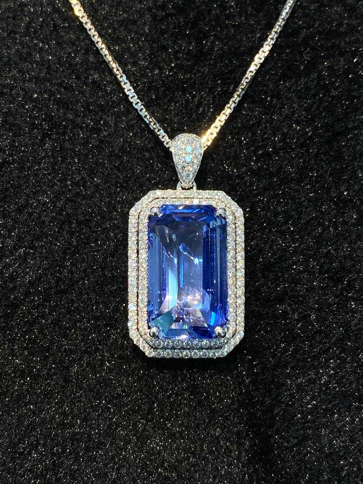 สร้อยคอจี้แซฟไฟร์สีฟ้าหรูหราพร้อมเครื่องประดับอัญมณีประกาย