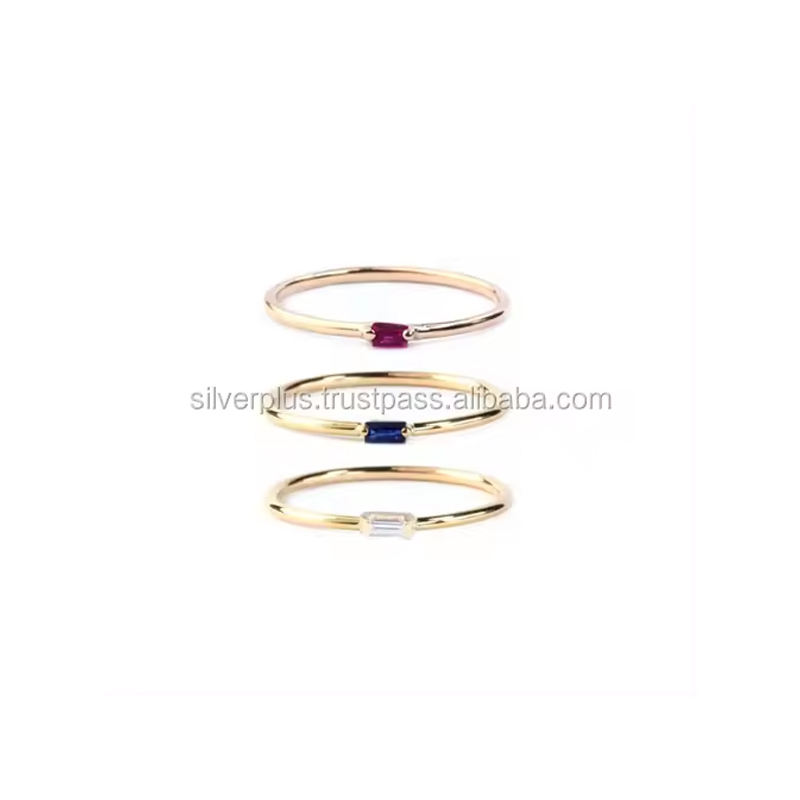 แหวนเพชรทับทิมสีฟ้าธรรมชาติ14K สีเหลืองผู้ผลิตขายส่งผลิตใน10K/18K