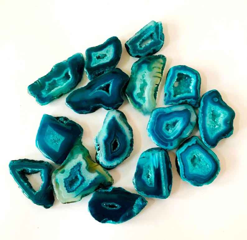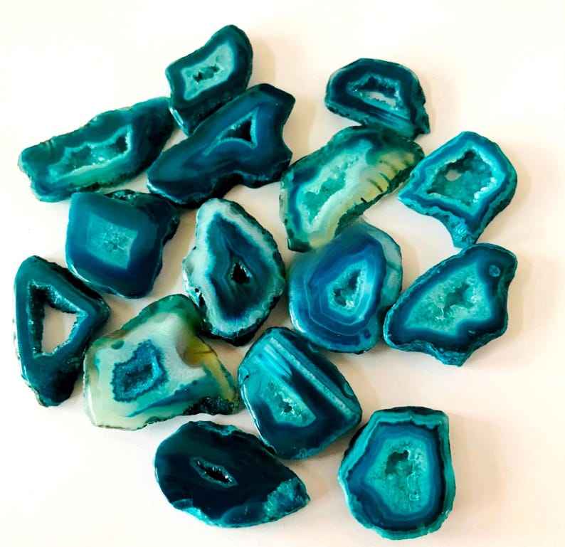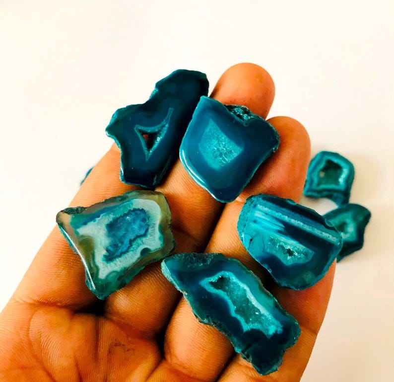 พลอยอะเกตทรงหลังเบี้ยสีฟ้าธรรมชาติขนาดและรูปทรงผสม