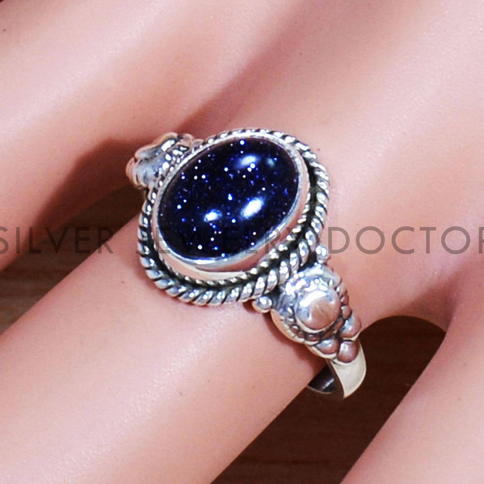 แหวนซันสโตนสีน้ำเงินธรรมชาติ คุณภาพดี แหวนเงินแท้ 925 ทำมือ ประดับพลอย ราคาขายส่ง เครื่องประดับเงิน