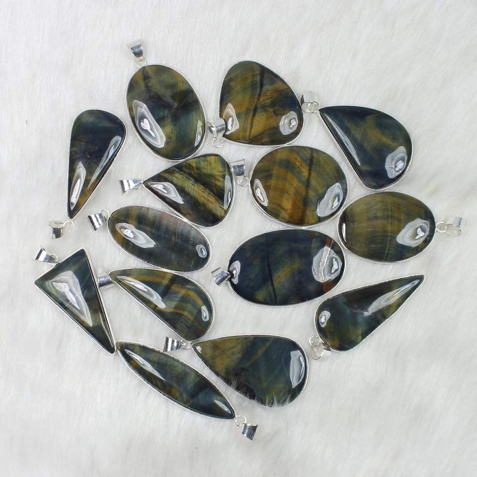 Blue tiger eye silver plated pendants