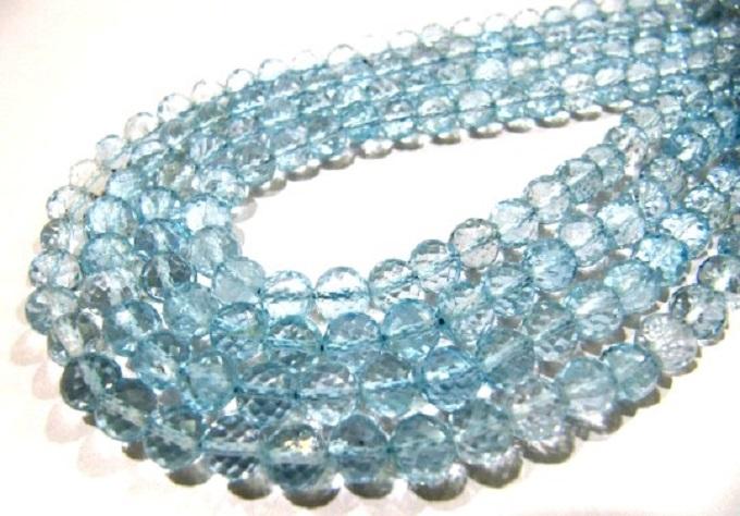ลูกปัดทรงกลมพลอยบุษราคัมธรรมชาติสีฟ้าลูกปัดพลอยบุษราคัมแท้ขนาด5-6มม.