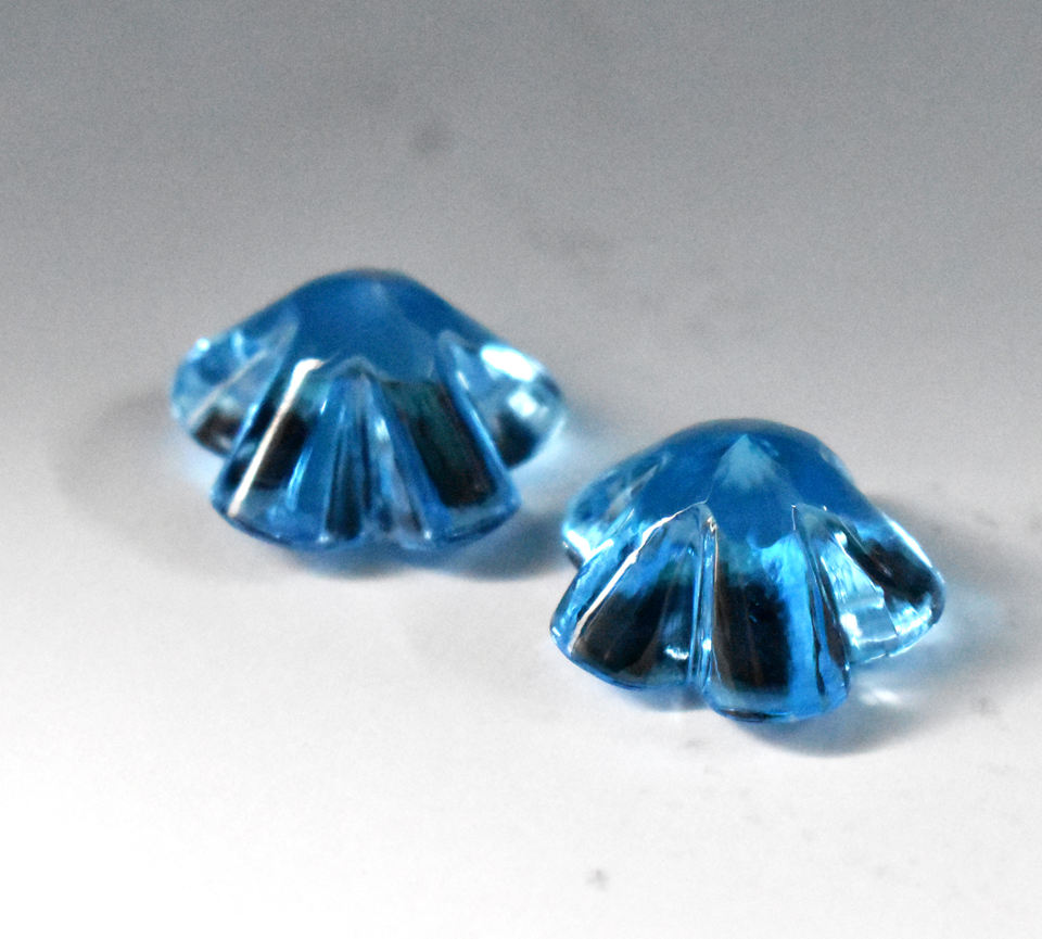งานแกะสลักดอกไม้บุษราคัมสีฟ้าคู่คริสตัลอัญมณีควอตซ์หลวมสำหรับทำต่างหูและเครื่องประดับ