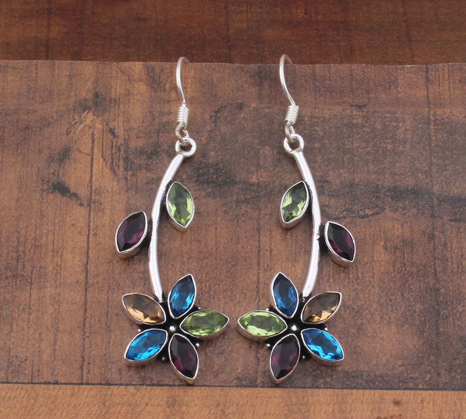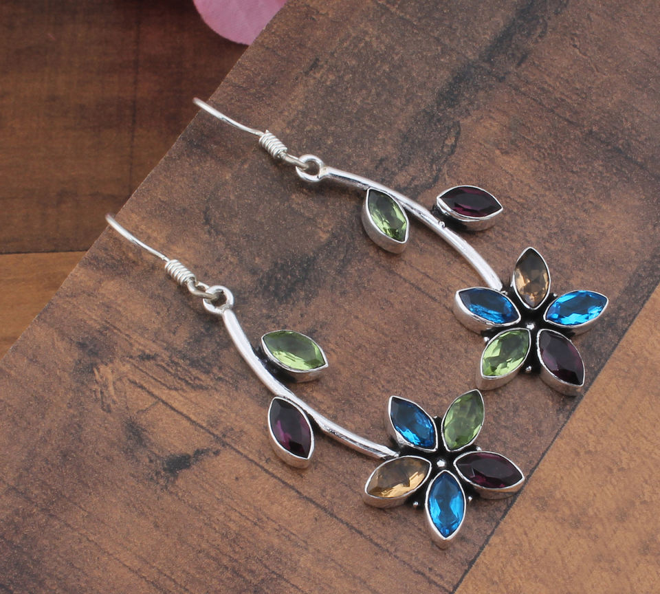 ต่างหูเงินแท้ 925 ประดับพลอยบลูโทแพซและโกเมนธรรมชาติ สไตล์วินเทจ เหมาะสำหรับเป็นของขวัญวันครบรอบแต่งงานหรืองานเลี้ยง