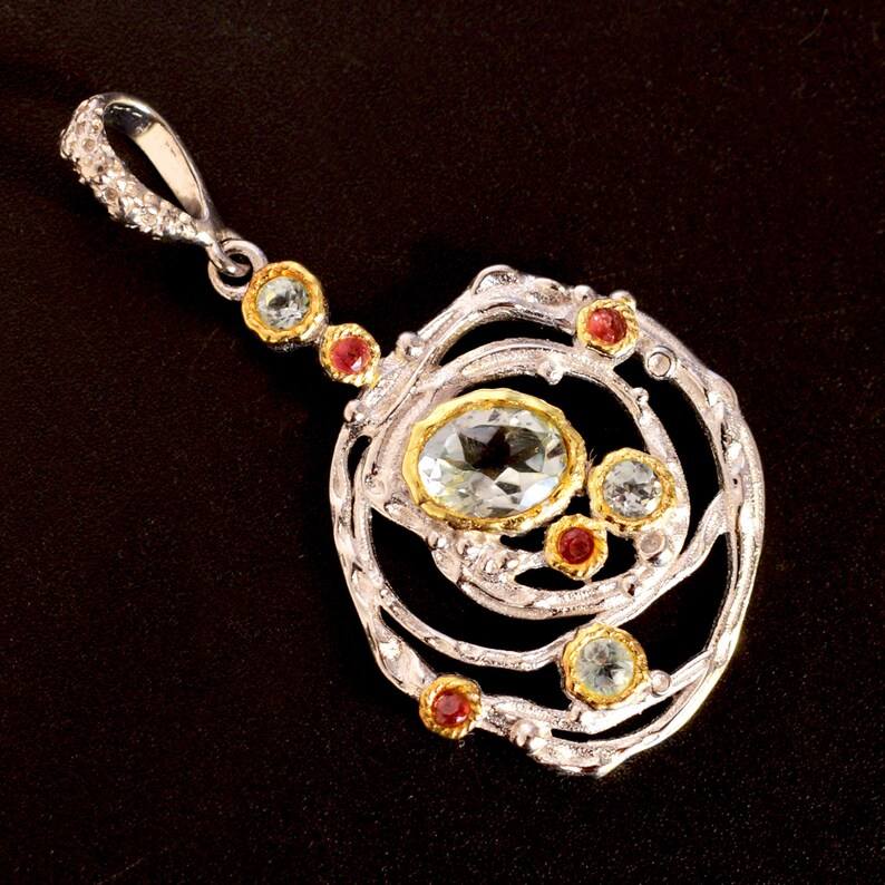 จี้โกเมนบุษราคัมสีฟ้าธรรมชาติ925เงินสเตอร์ลิงสร้อยคอชุบทองอัญมณีหลายแบบของขวัญปีใหม่
