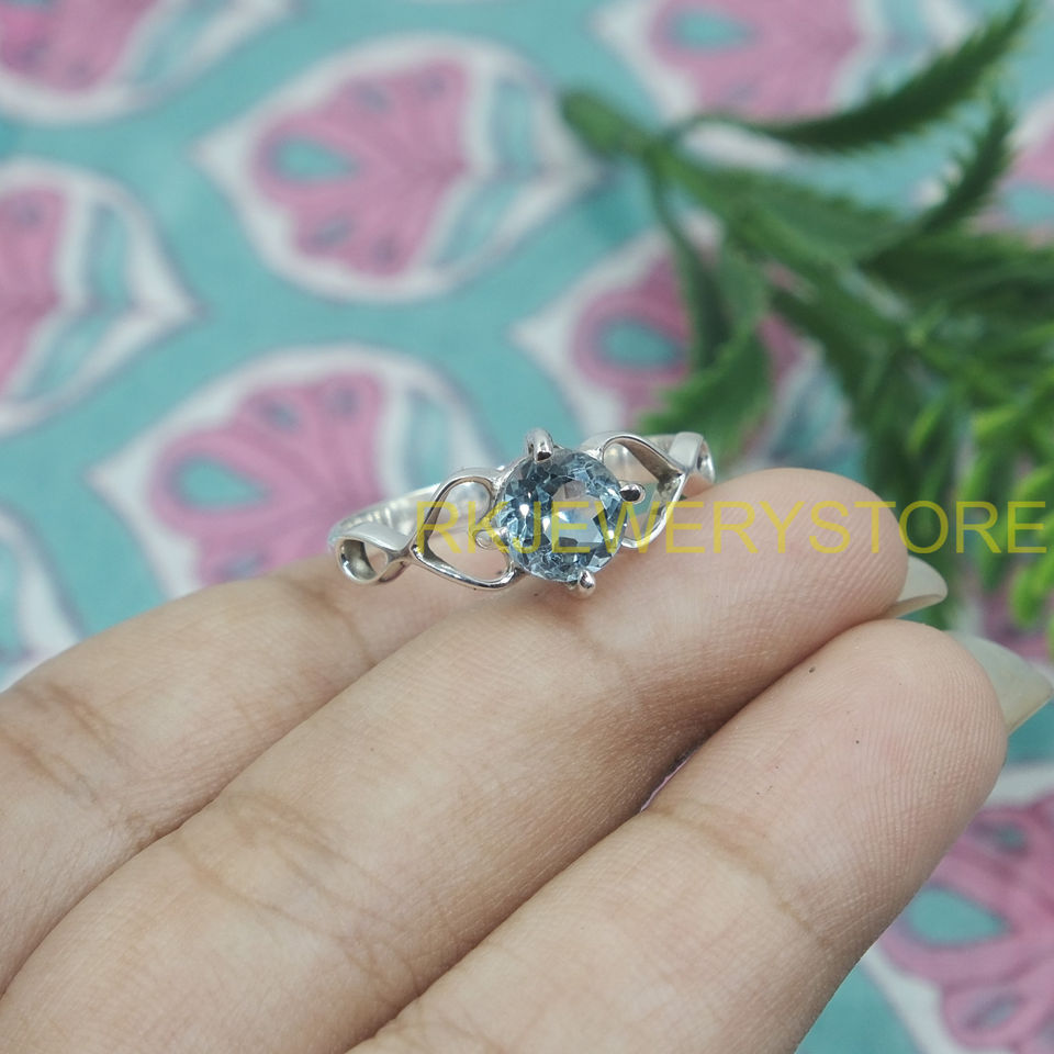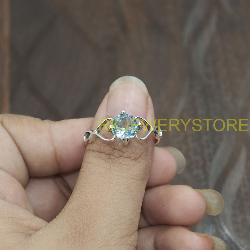 แหวนพลอยบลูโทแพซธรรมชาติ เงินแท้ 925 ดีไซน์ลายดอกไม้แบบอินฟินิตี้ ทำมือ สำหรับผู้หญิง ของขวัญสำหรับคุณแม่