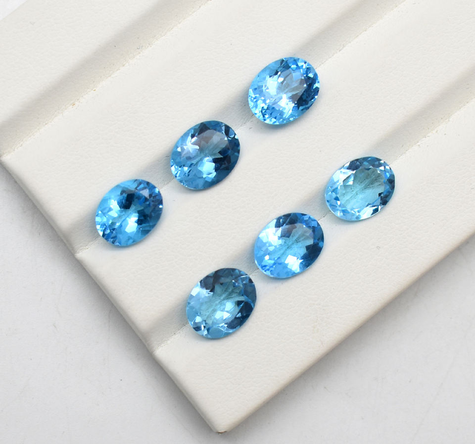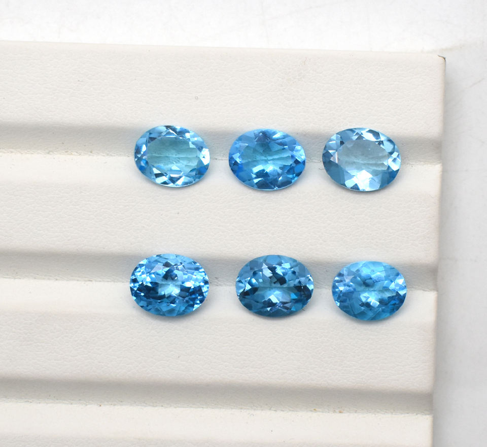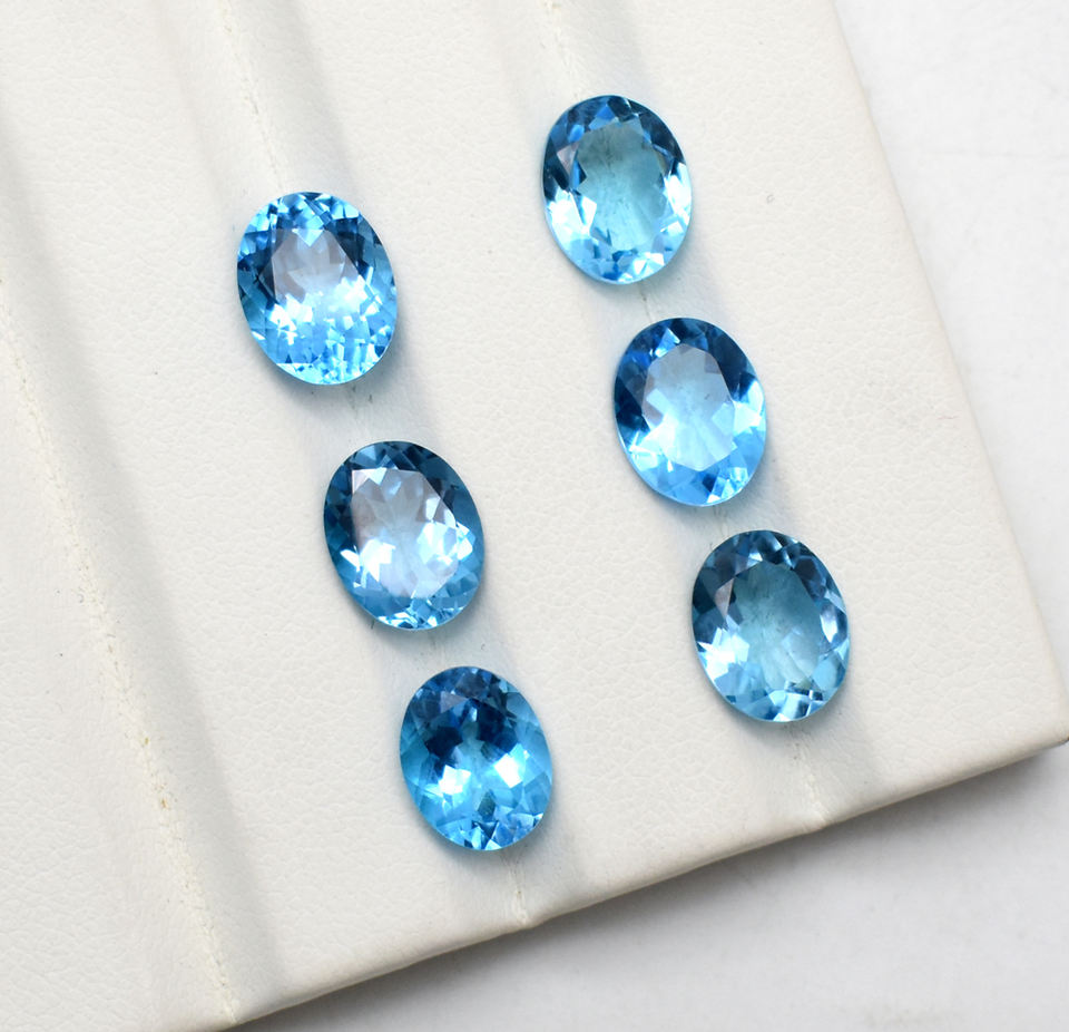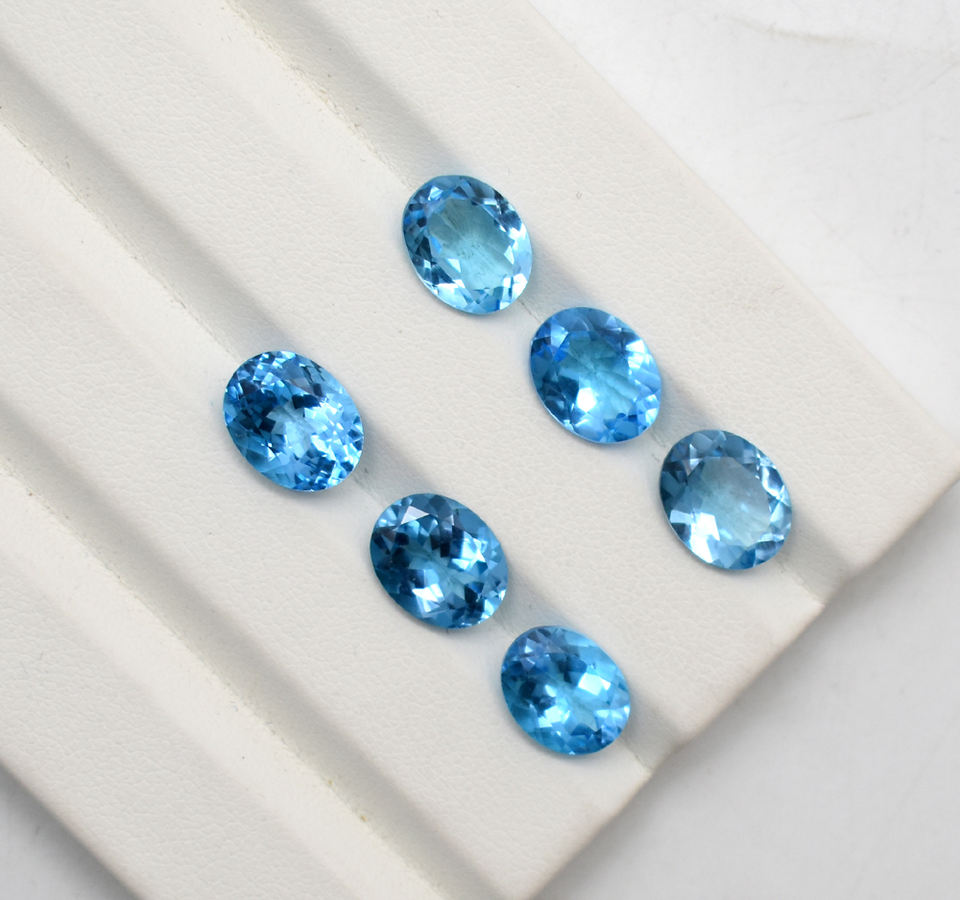 บุษราคัมสีฟ้าธรรมชาติรูปไข่สดใสตัดดีที่สุด AAA ไฟธรรมชาติสวิสสีฟ้าบุษราคัม {ไร้ที่ติ-VVS ความคมชัด} 10X8 MM & 8X6mm