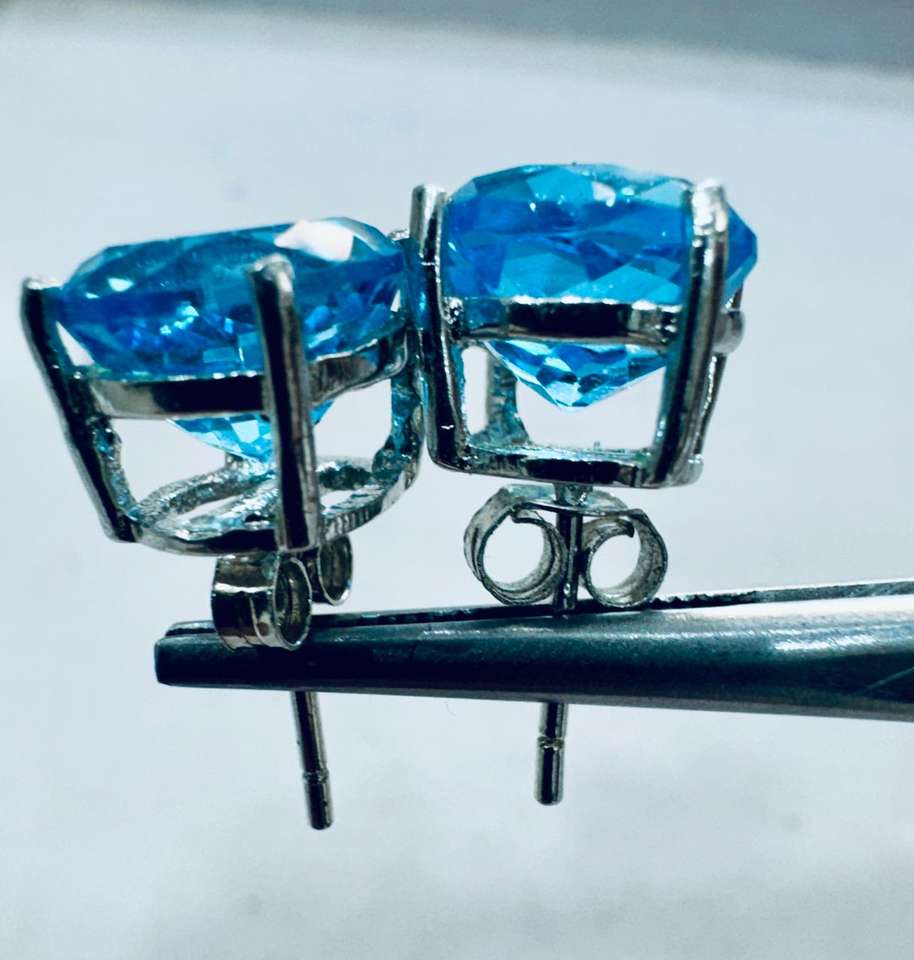 ต่างหูเงินแท้ประดับบลูโทแพซธรรมชาติ ประกายสีฟ้าสดใส ของขวัญเครื่องประดับชั้นดีสำหรับเธอ สวยสง่า