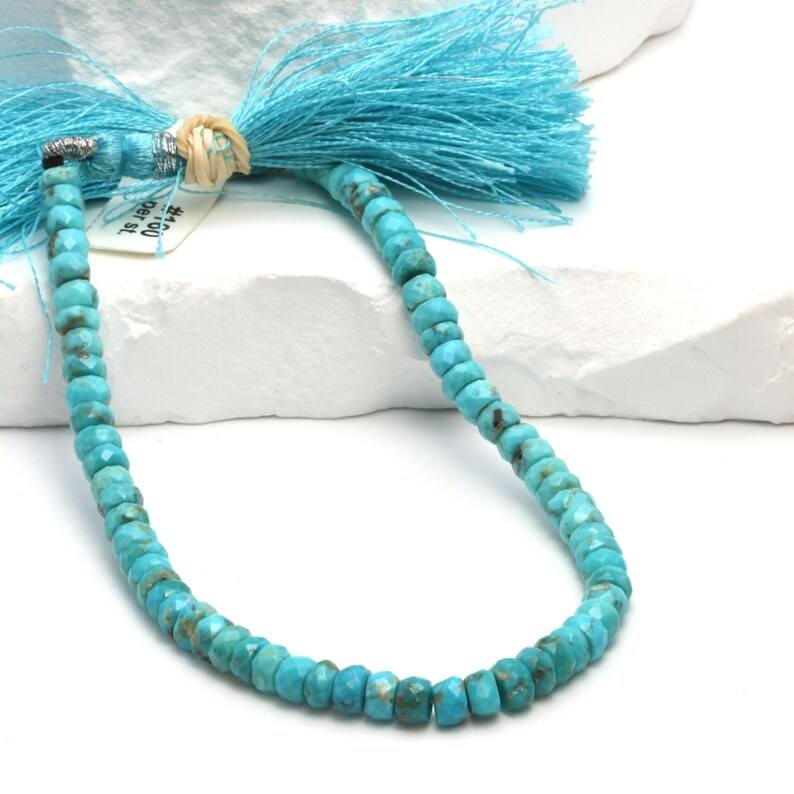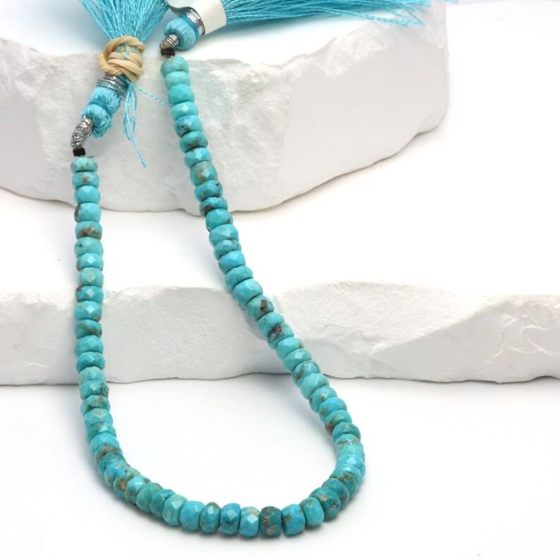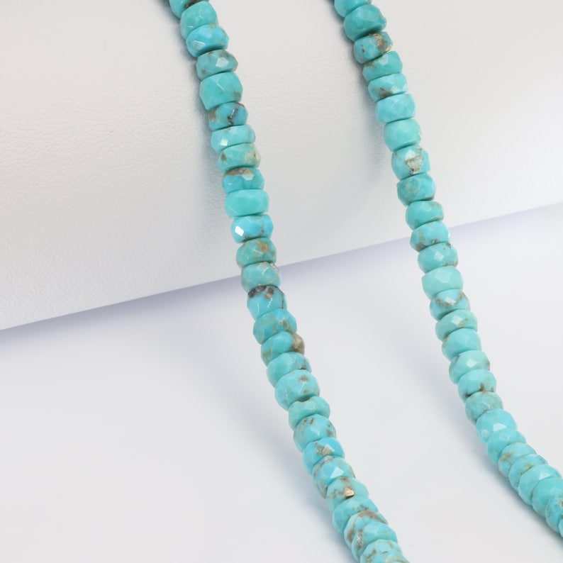 ลูกปัดเทอร์ควอยซ์สีน้ำเงินธรรมชาติทรงเหลี่ยมร้อยเป็นเส้น สำหรับทำเครื่องประดับ อุปกรณ์งานฝีมือ DIY