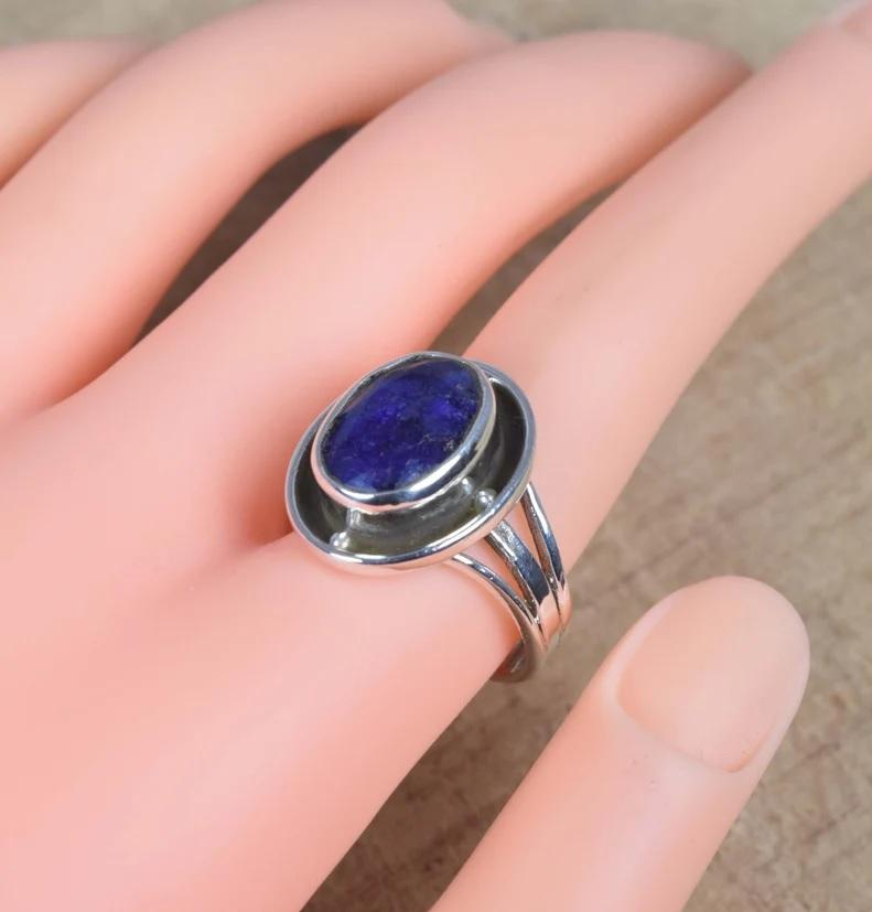 แหวนเงินแท้ 925 ประดับพลอยเทอร์ควอยซ์สีน้ำเงินธรรมชาติทรงรี งานแฮนด์เมด เครื่องประดับพลอยสำหรับผู้หญิง ของขวัญวันเกิดประจำเดือนธันวาคม