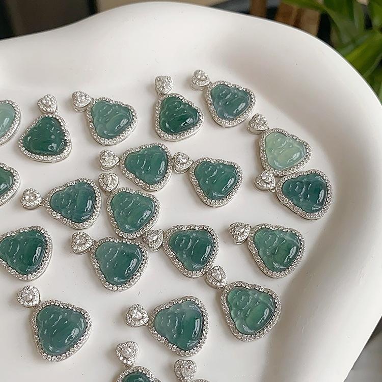 จี้พระพุทธรูปหยกน้ำสีฟ้าธรรมชาติ สร้อยคอเงินแท้ S925 ประดับพระพุทธรูปยิ้ม จี้แบบจีนใหม่ งานฝีมือชั้นดี