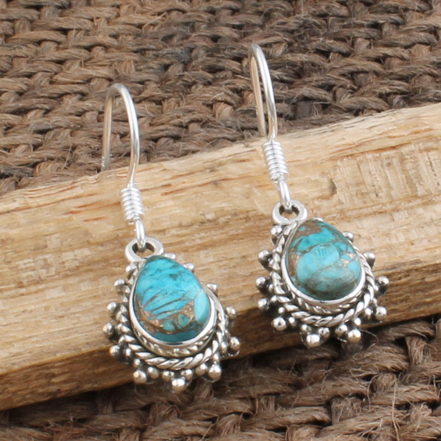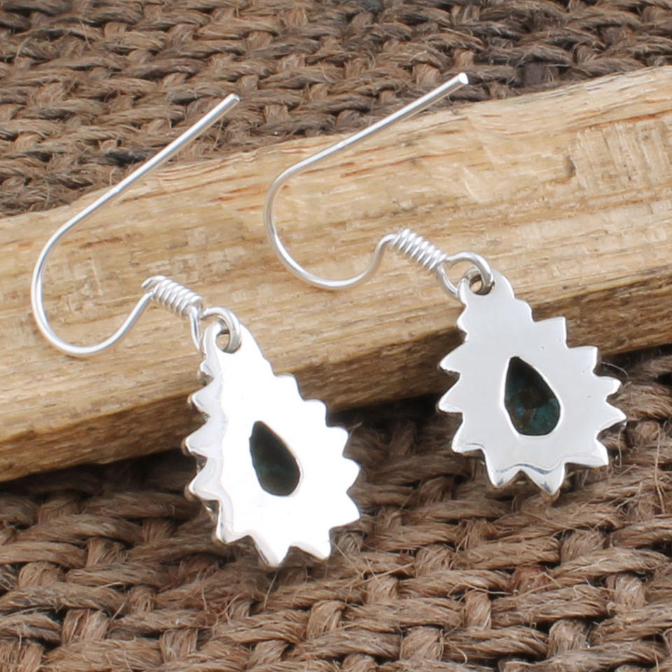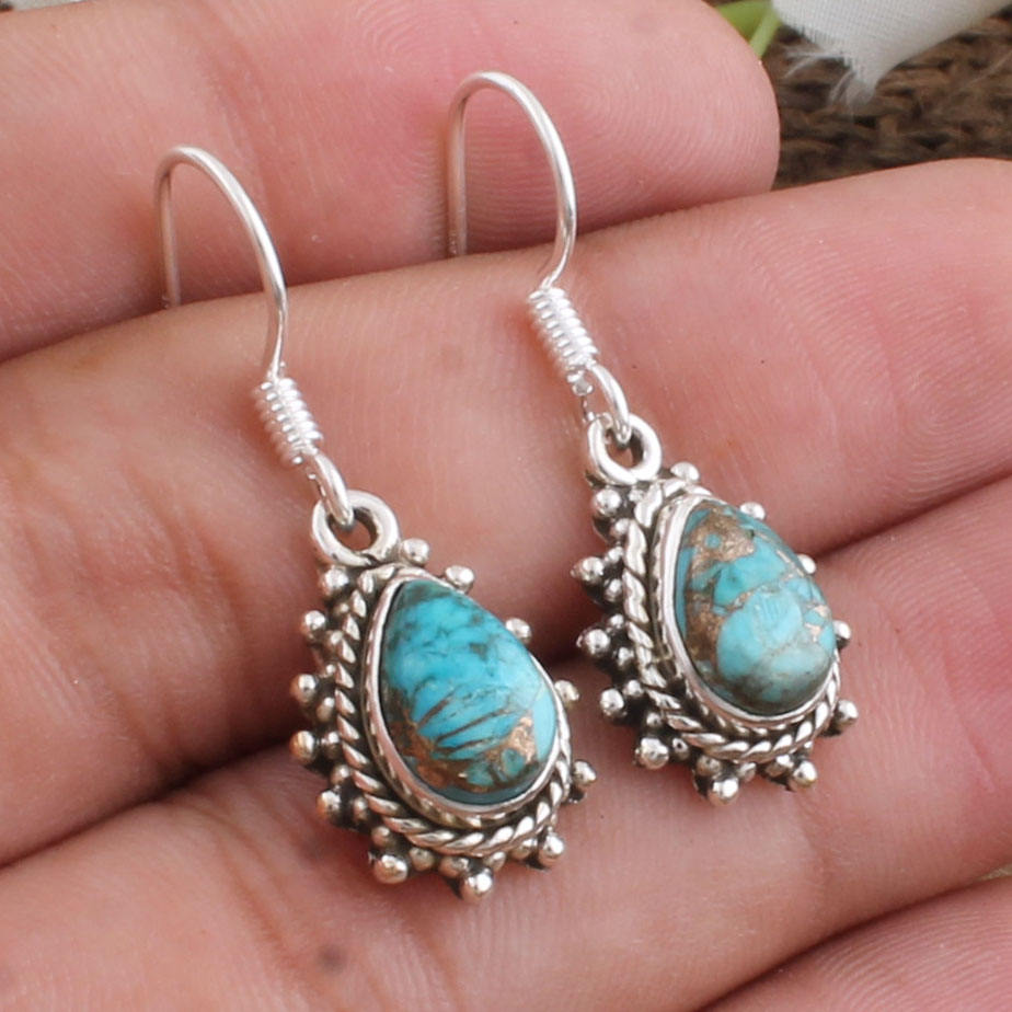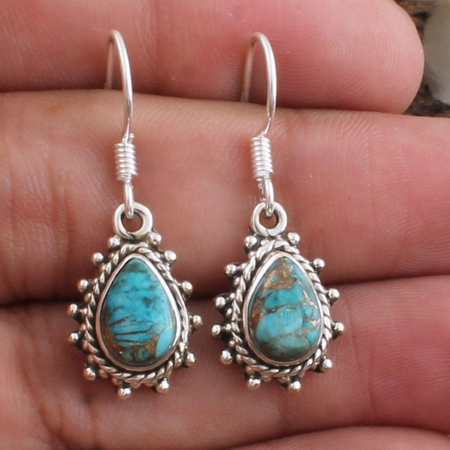 ต่างหูห้อยทรงวินเทจทำมือจากเงินแท้ประดับเพทายสีน้ำเงินธรรมชาติ สไตล์โบโฮ ออกซิไดซ์ เหมาะสำหรับงานปาร์ตี้