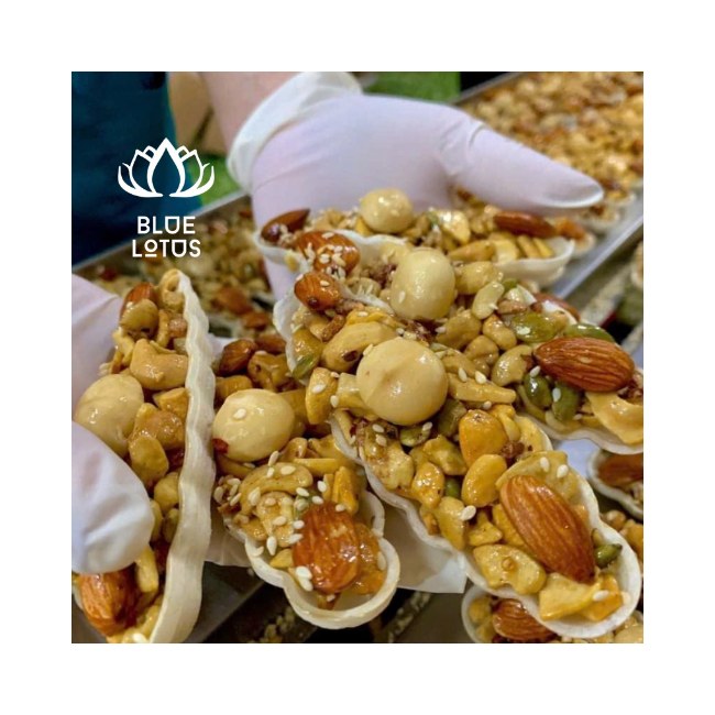 เนื้อหา:ถั่วผสม (เม็ดมะม่วงหิมพานต์, อัลมอนด์, ถั่วลิสง, วอลนัท), ฟักทอง