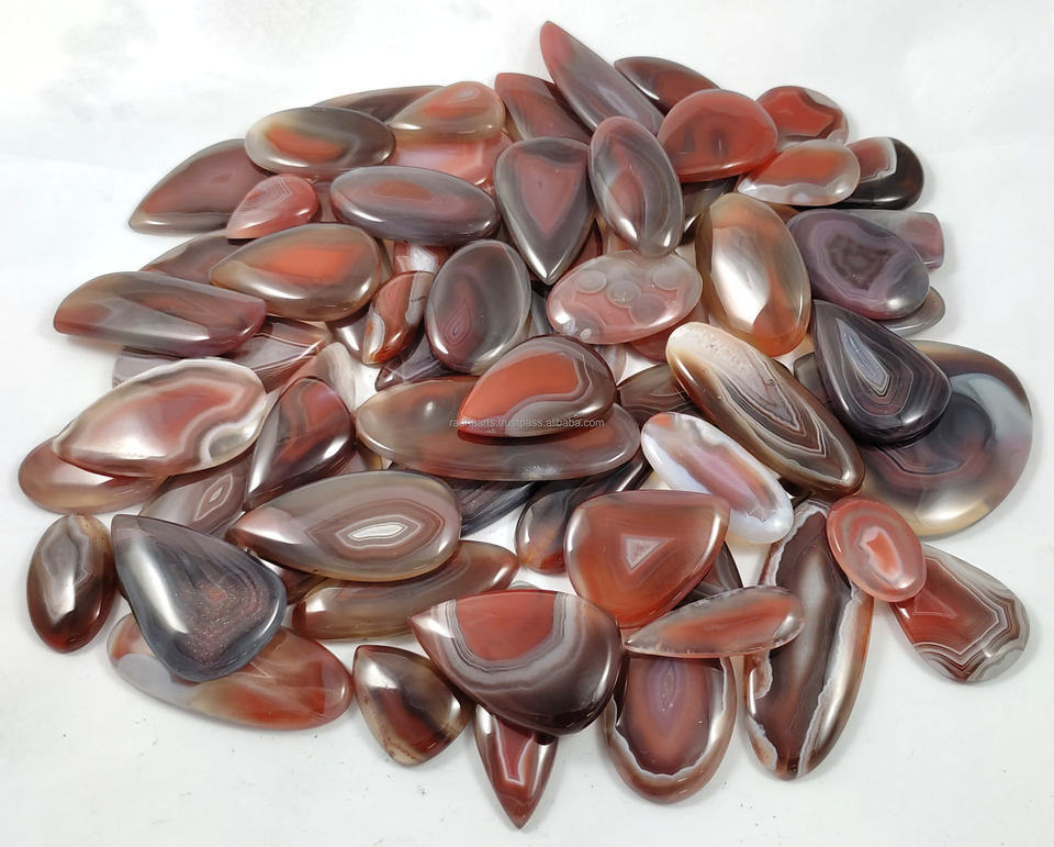 พลอยอาเกตทรงคาโบชองจากบอตสวานาธรรมชาติ รูปทรงผสมผสาน ขัดเงาด้วยมือ ราคาขายส่งสำหรับทำเครื่องประดับเงิน