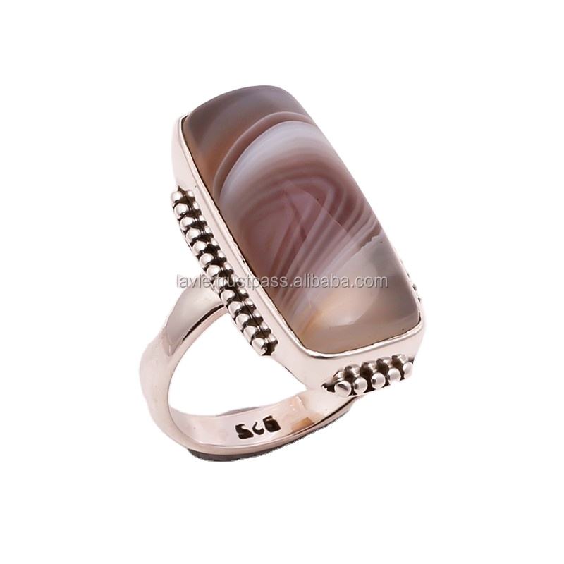บอตสวานาธรรมชาติอาเกตแหวน925เครื่องประดับเงินสเตอร์ลิงสำหรับคริสมาสต์ขายที่กำหนดเองทำเครื่องประดับช่างฝีมือผู้ค้าส่ง