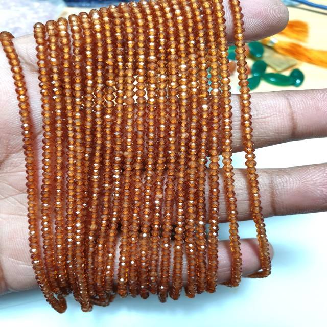 พลอยเฮสโซไนต์การ์เนตธรรมชาติทรงรอนเดลเหลี่ยมเพชรพลอยสีส้ม ขนาด 3 มม. ยาว 13 นิ้ว เกรด AAA รับรองโดย CMA ผู้ตรวจสอบจากภายนอก