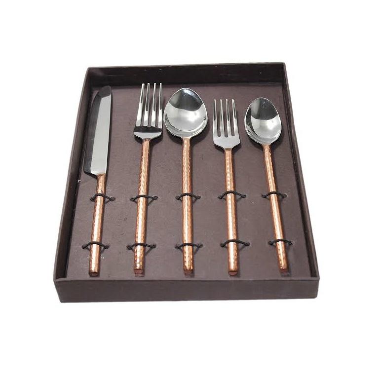 ชุดเครื่องใช้บนโต๊ะอาหารทองเหลืองธรรมชาติ5ชิ้นพร้อมเคลือบด้านทำด้วยมือสำหรับร้านอาหารบ้านและโรงแรมในราคาที่ต่ำกว่า