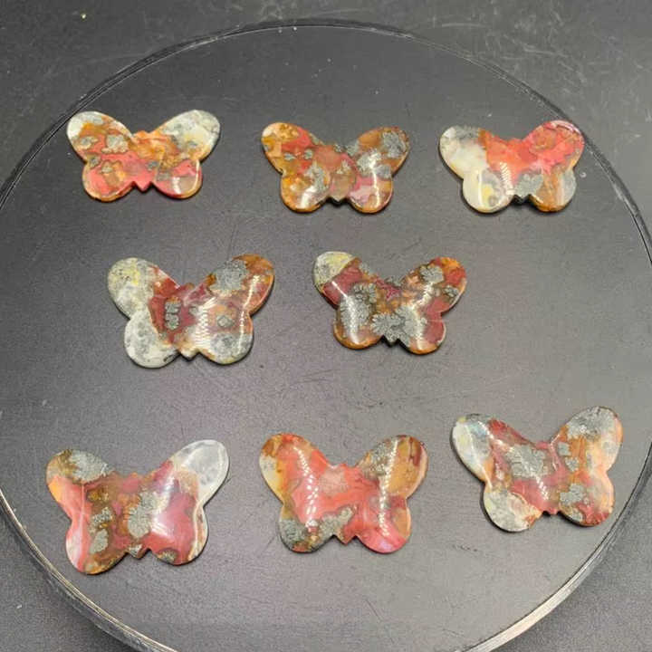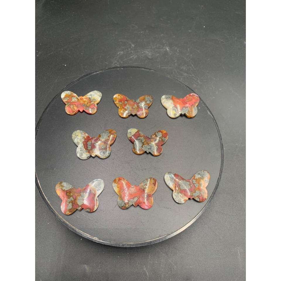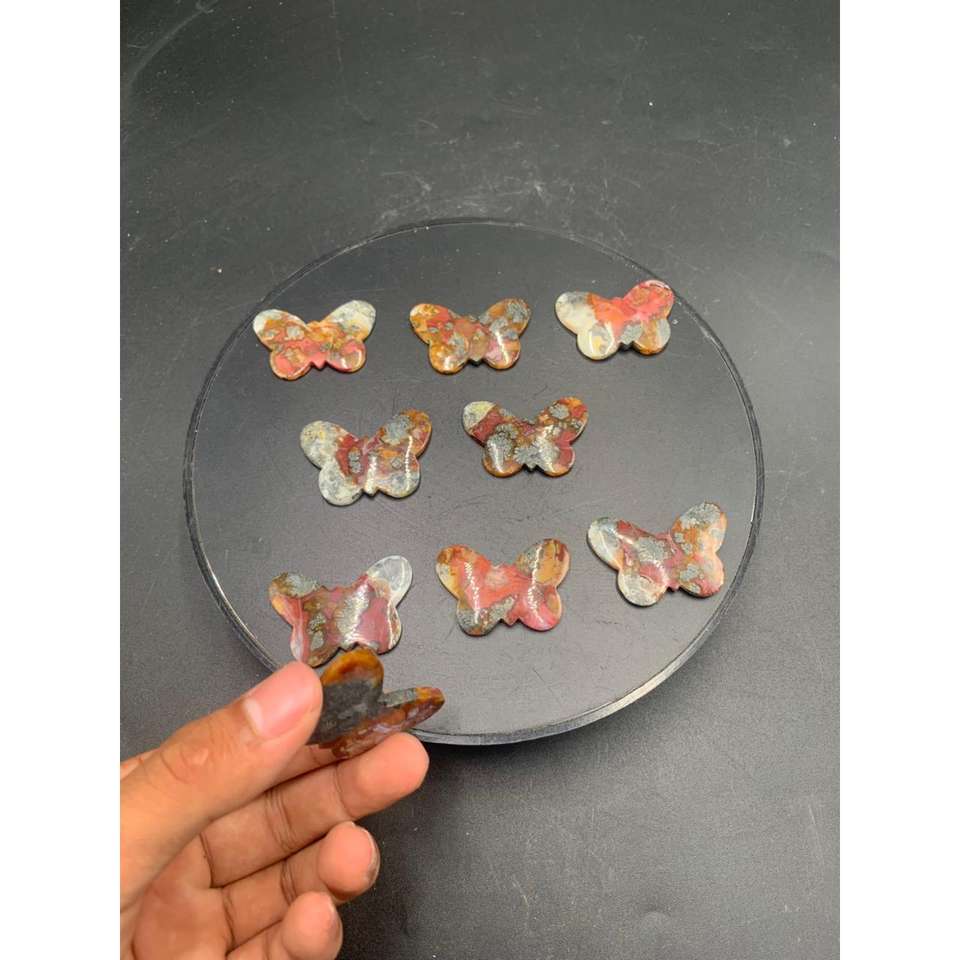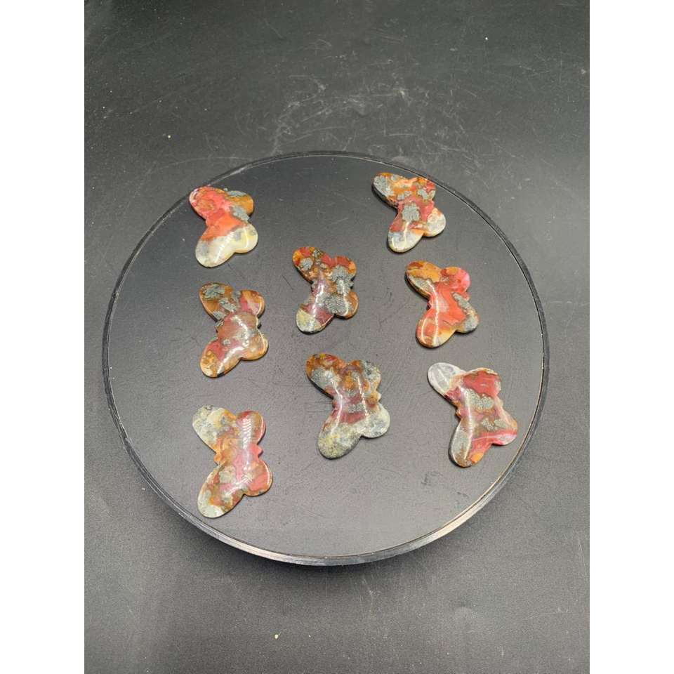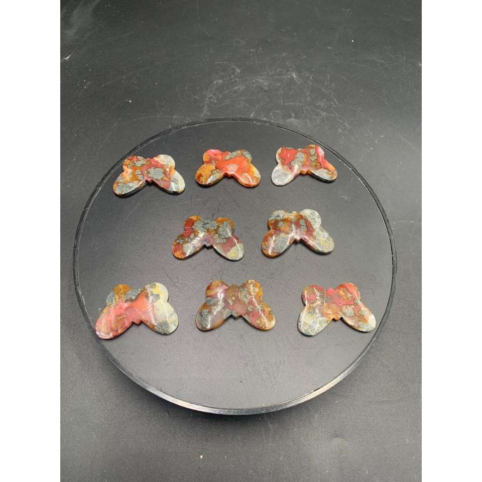 พลอยมอสอาเกตสีแดงธรรมชาติทรงผีเสื้อขนาด 30x40x4 มม. ขัดเงาสำหรับทำเครื่องประดับ