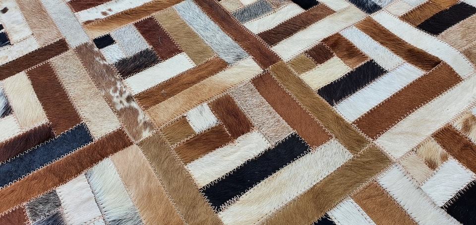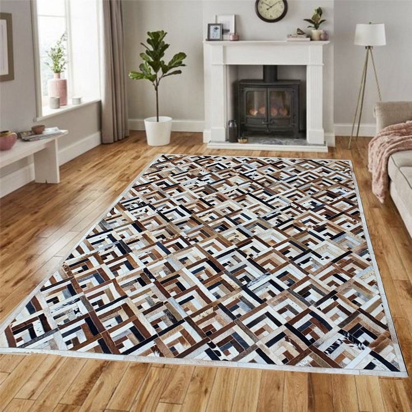 พรมหนังวัวสีน้ำตาลธรรมชาติและสีขาว งานแฮนด์เมด ตกแต่งด้วยหนังแท้แบบแฮร์ออน เหมาะสำหรับบ้านและสำนักงาน
