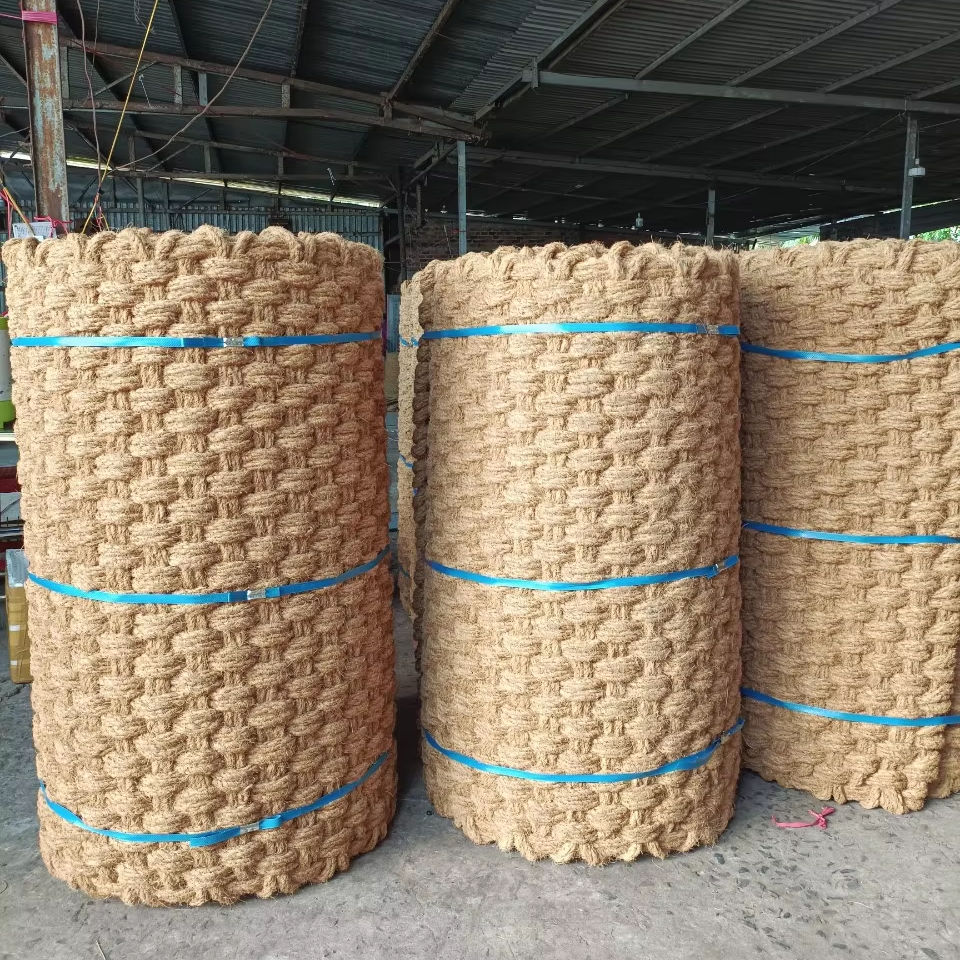 แผ่นม้วนมะพร้าวธรรมชาติสีน้ำตาลยาว10ม. 65กก. เส้นใยมะพร้าวที่เป็นมิตรต่อสิ่งแวดล้อมสำหรับทางเดินขนาด1*10ม.