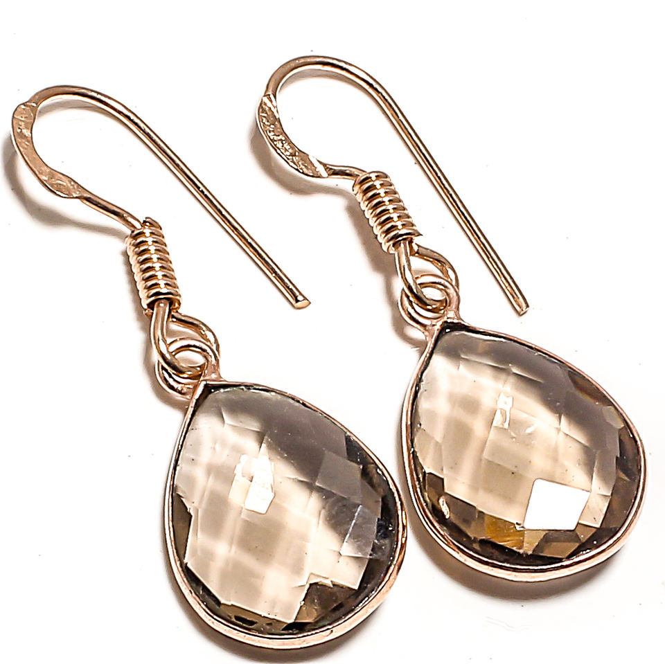 ต่างหูควอทซ์สโมคกี้สีน้ำตาลธรรมชาติจี้หยดน้ำสีโรสโกลด์รูปทรงลูกแพร์ออกแบบงานแต่งงานลวดอัญมณีห้อยตุ้งติ้งเงิน