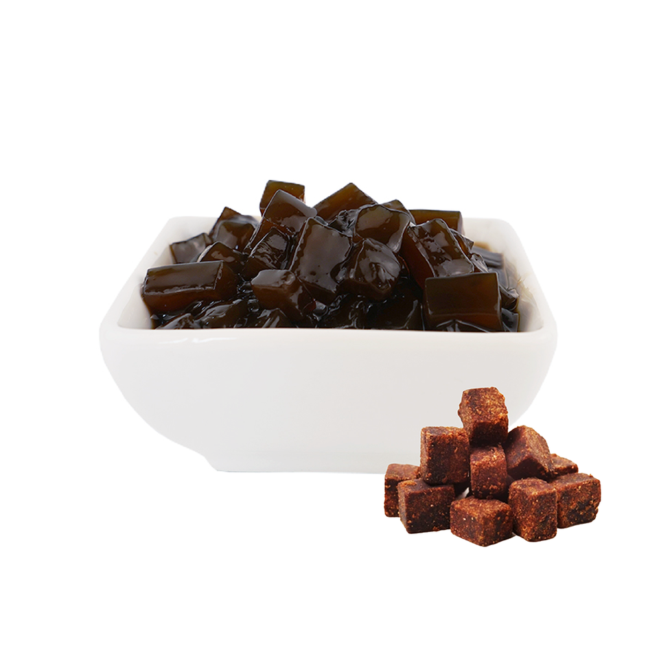 เยลลี่บุกน้ำตาลทรายแดงธรรมชาติ (หั่นเต๋า) พร้อมน้ำเชื่อมสำหรับชานมไข่มุกและของหวาน