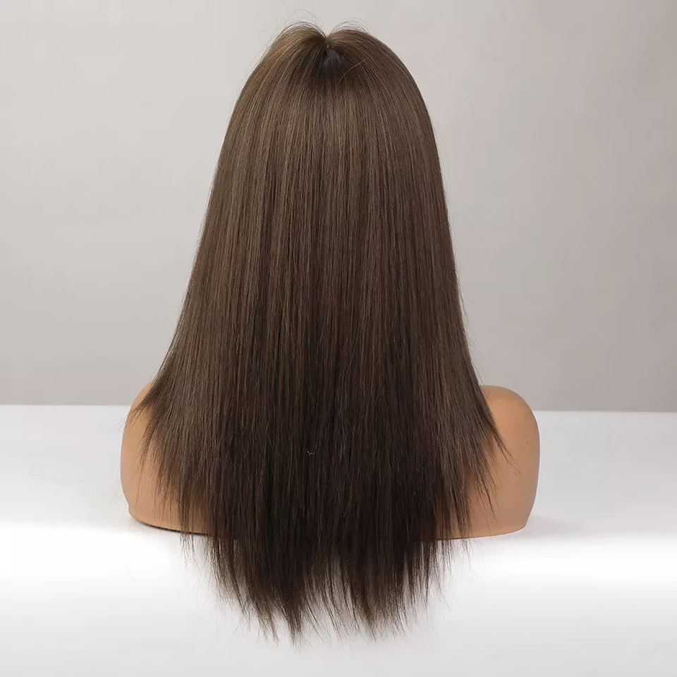 Natural Brown Wig with Bangs Long Straight Hair Wigs for Women