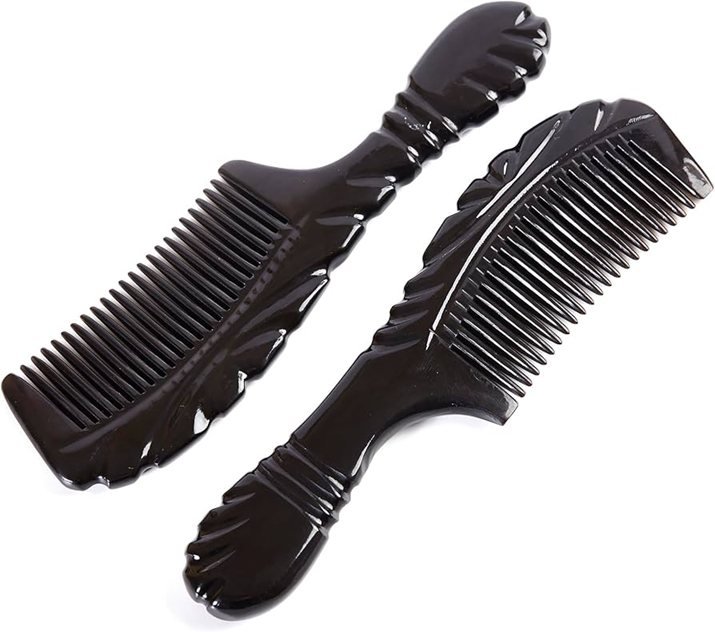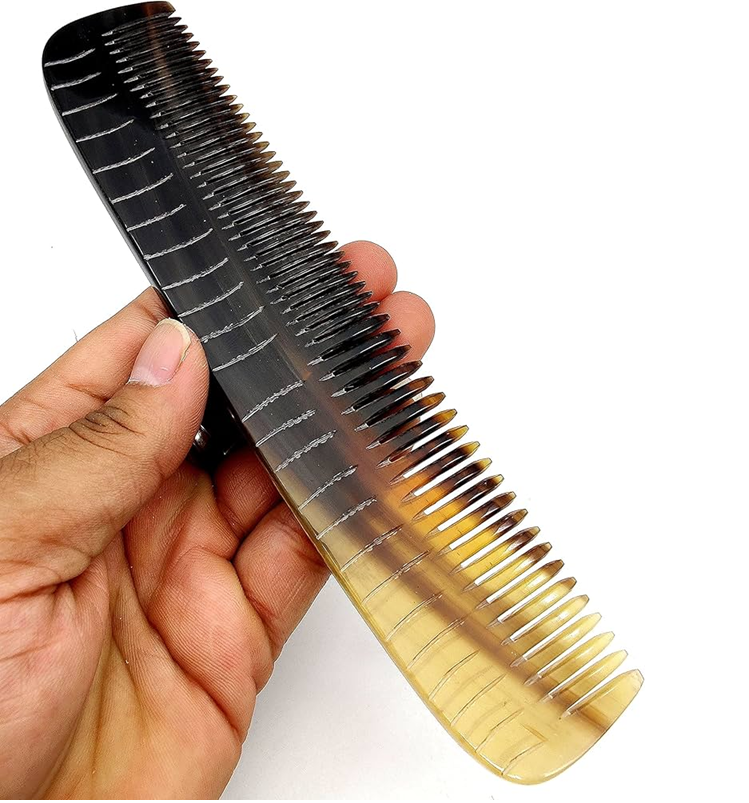 หวีผมรูปเขาควายธรรมชาติแกะสลักแบบสุ่มสีสำหรับนวดเคราดีไซน์อเนกประสงค์