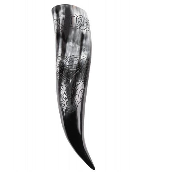 แตรน้ำพุร้อนธรรมชาติจากเขาควาย พร้อมสายหนังสำหรับถือ แตรไวกิ้ง แตรต่อสู้ ผลิตในอินเดีย