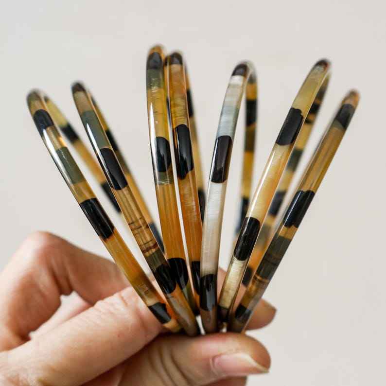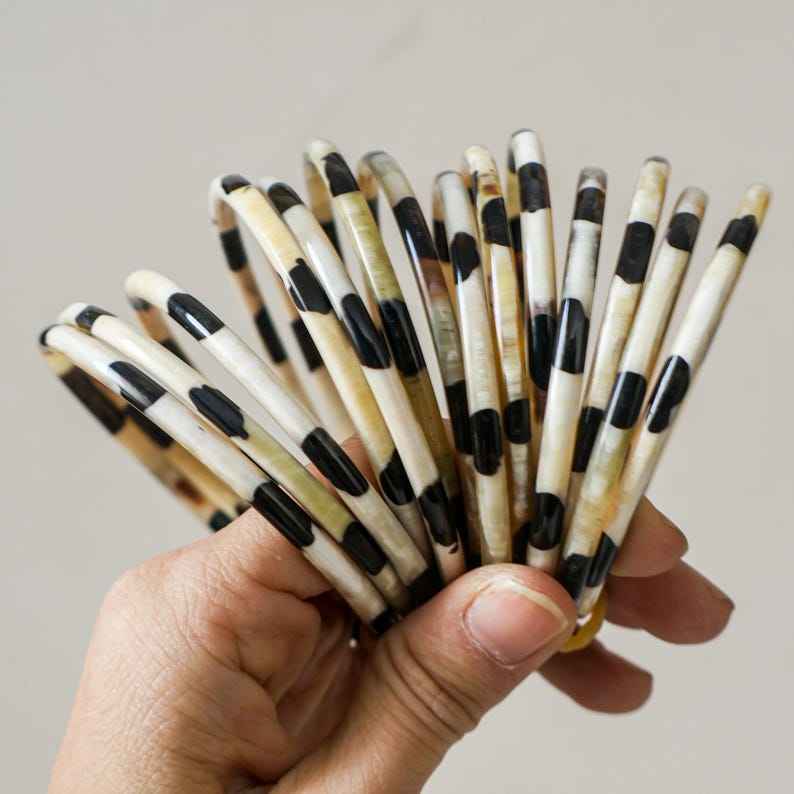 กำไลเขาควายขัดเงาธรรมชาติสร้อยข้อมือโบโฮนำโชคสไตล์สัตว์ของขวัญที่เป็นมิตรกับสิ่งแวดล้อม